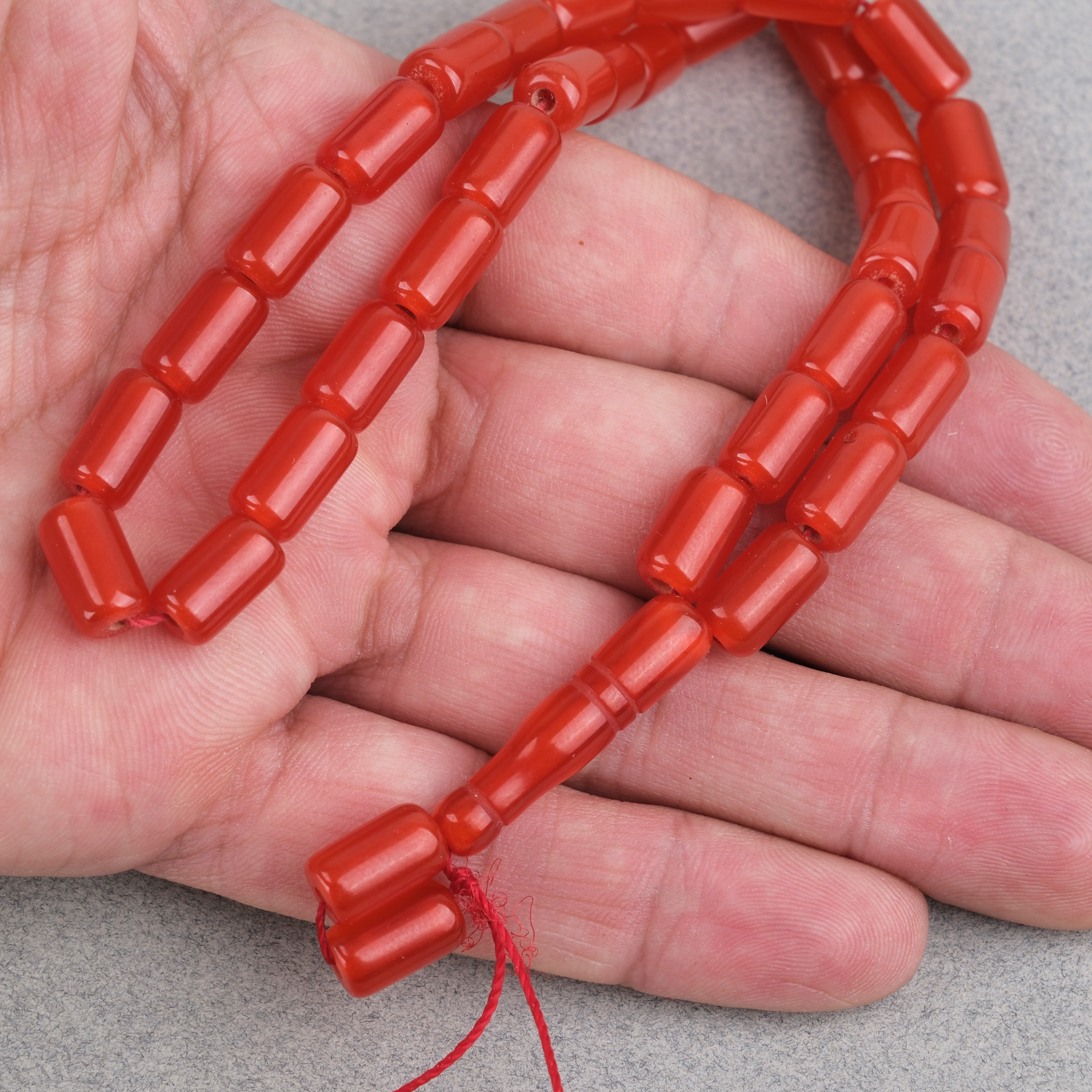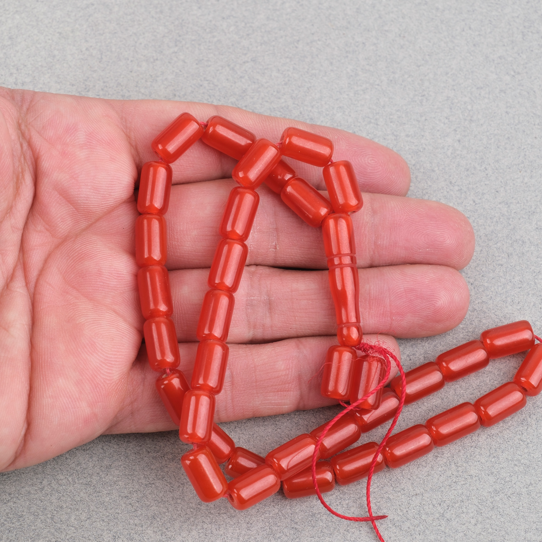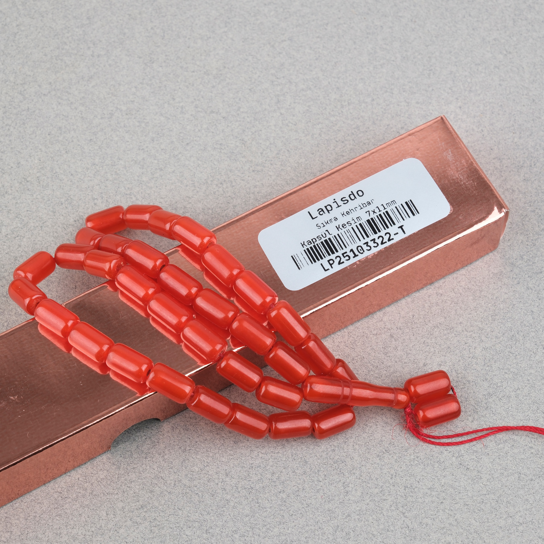 Sıkma Kehribar Kapsül Kesim 7x11mm Tesbih - Kırmızı Püskülsüz