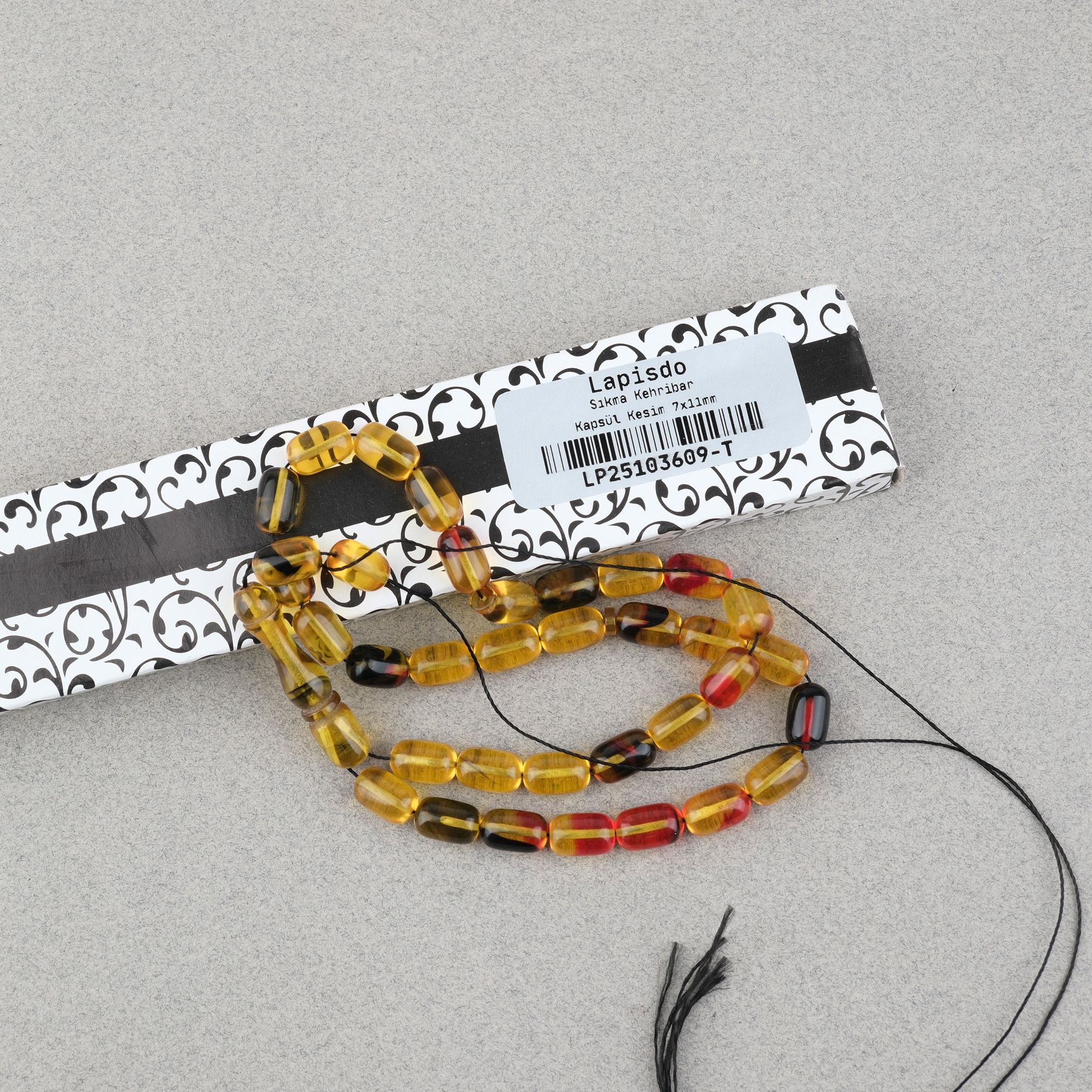 Sıkma Kehribar Kapsül Kesim 7x11mm Tesbih Püskülsüz