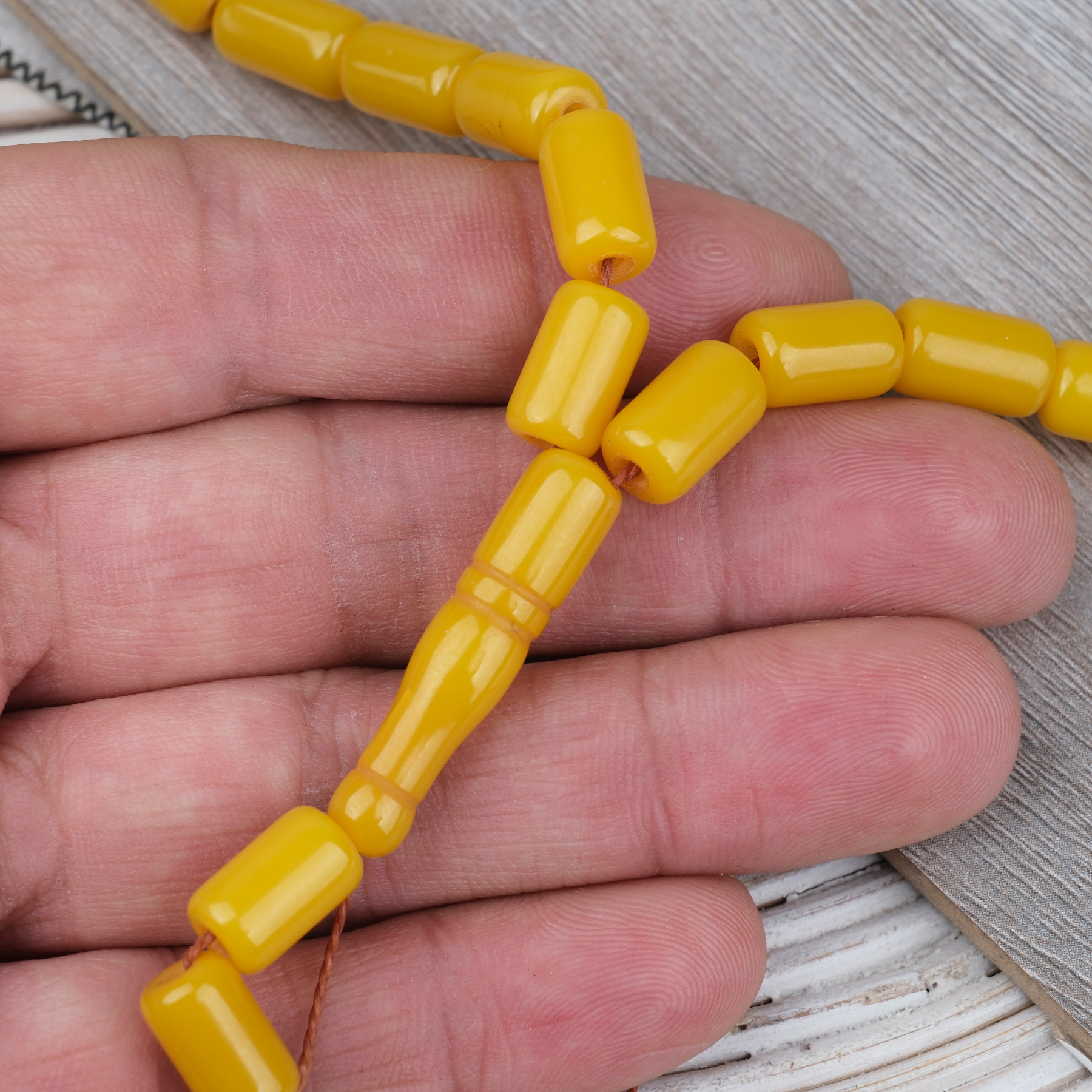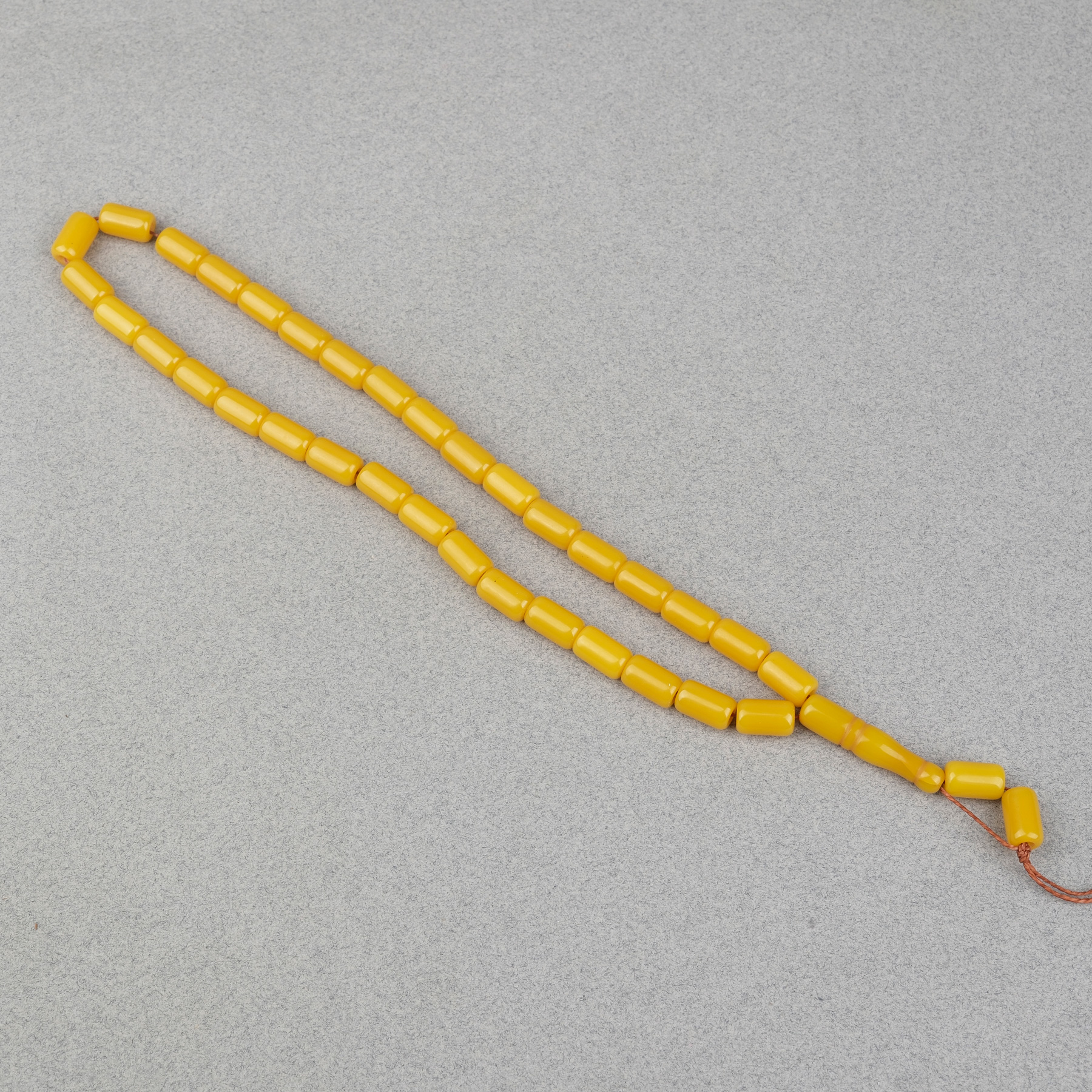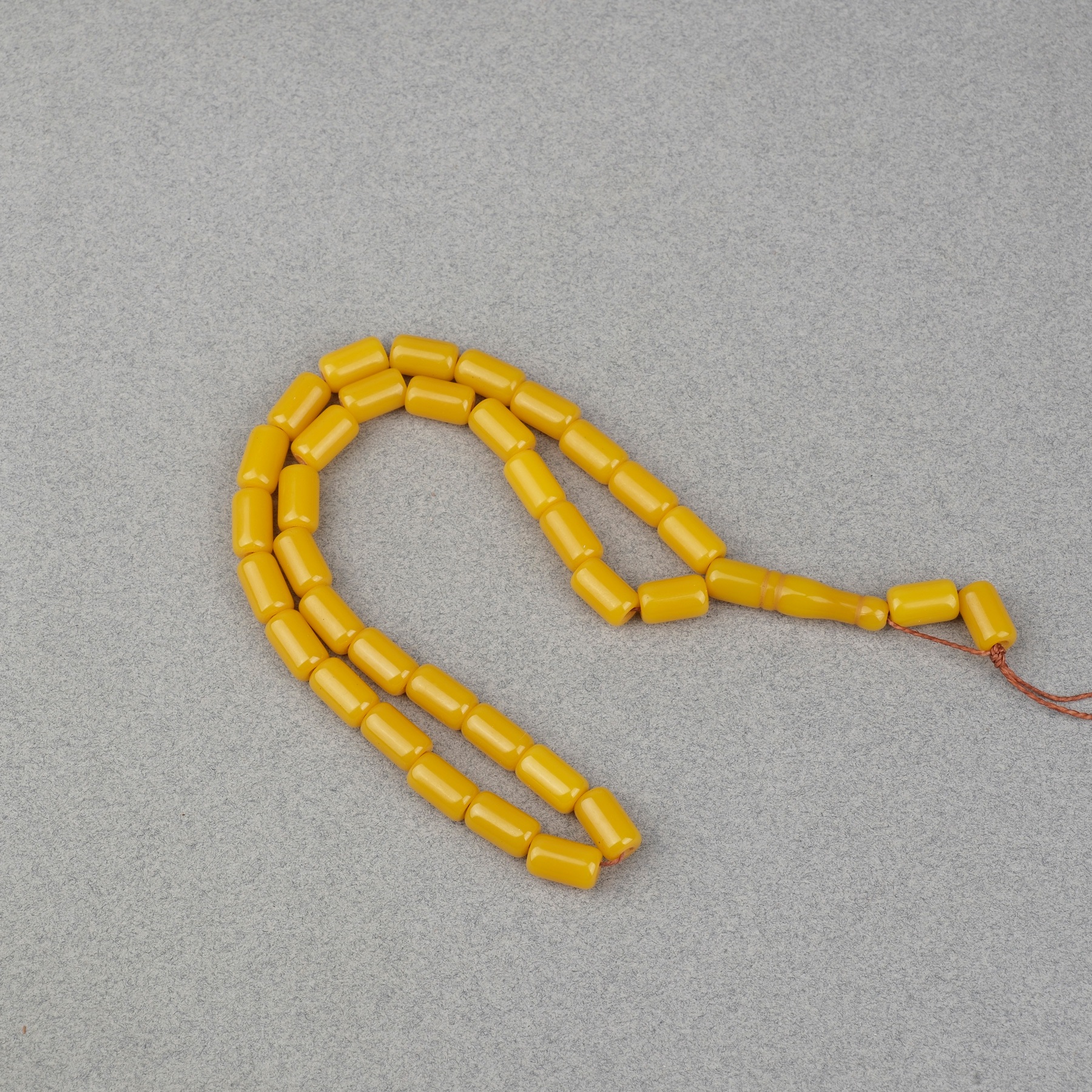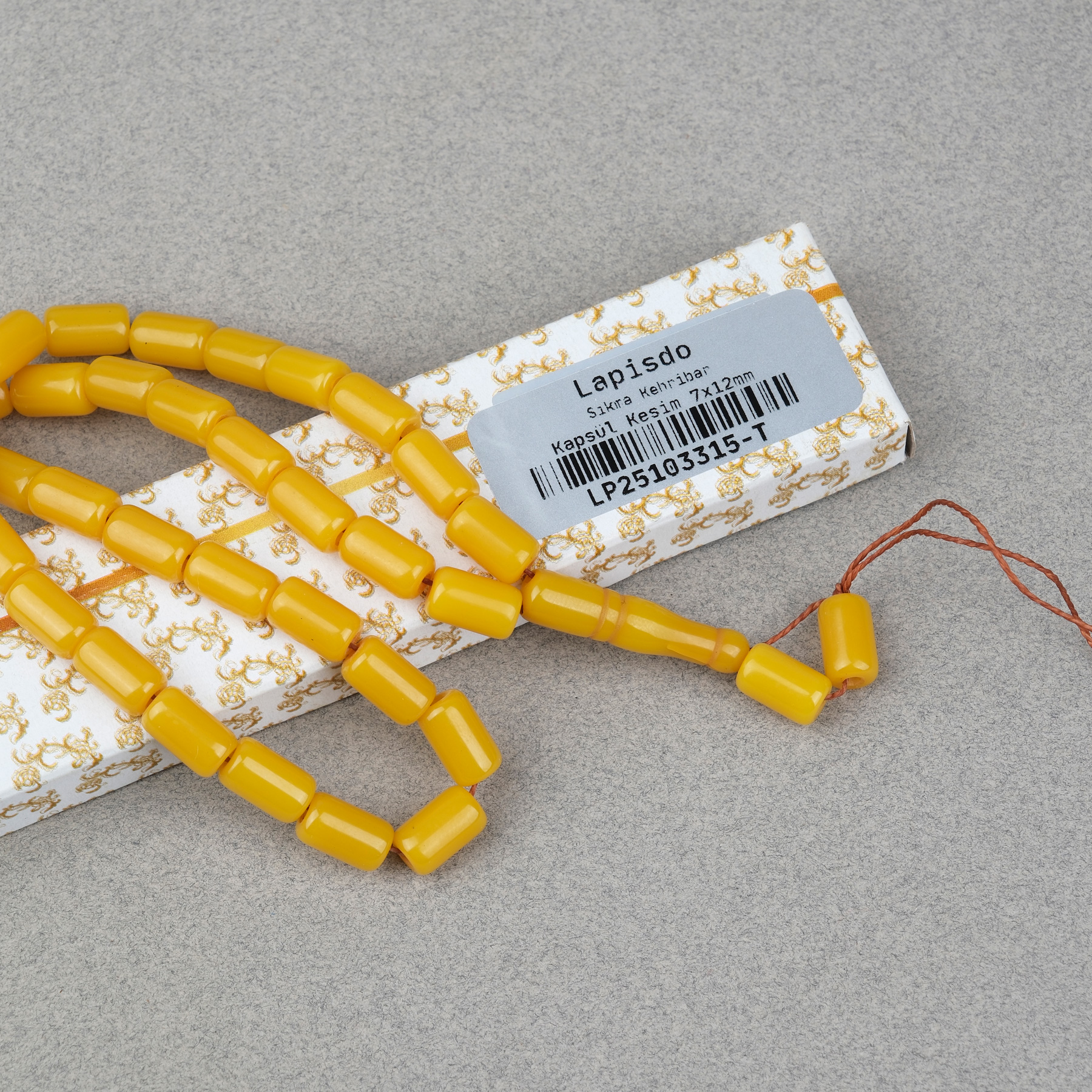 Sıkma Kehribar Kapsül Kesim 7x12mm Tesbih - Hardal Sarısı Püskülsüz