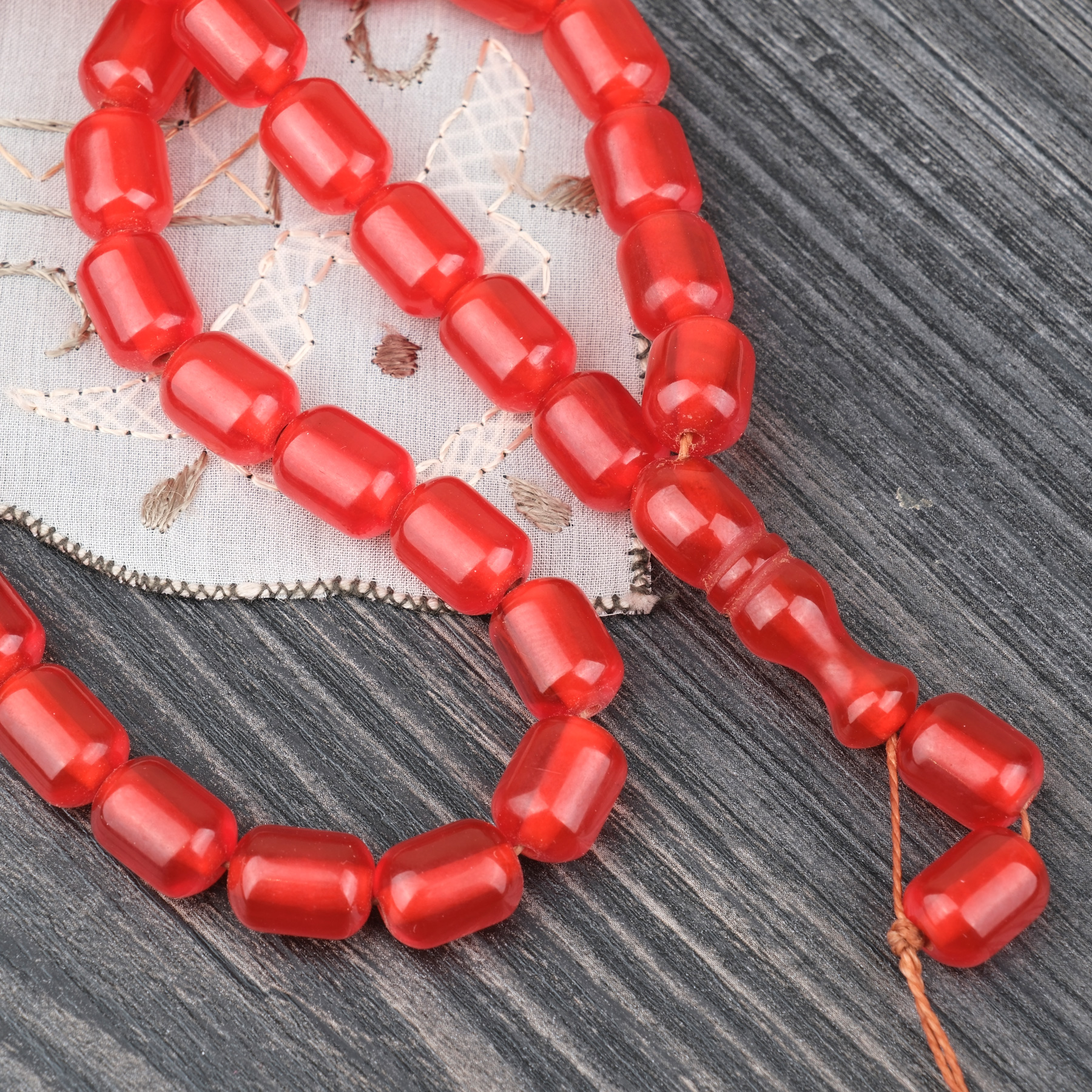 Sıkma Kehribar Kapsül Kesim 9x12mm Tesbih - Portakal Püskülsüz