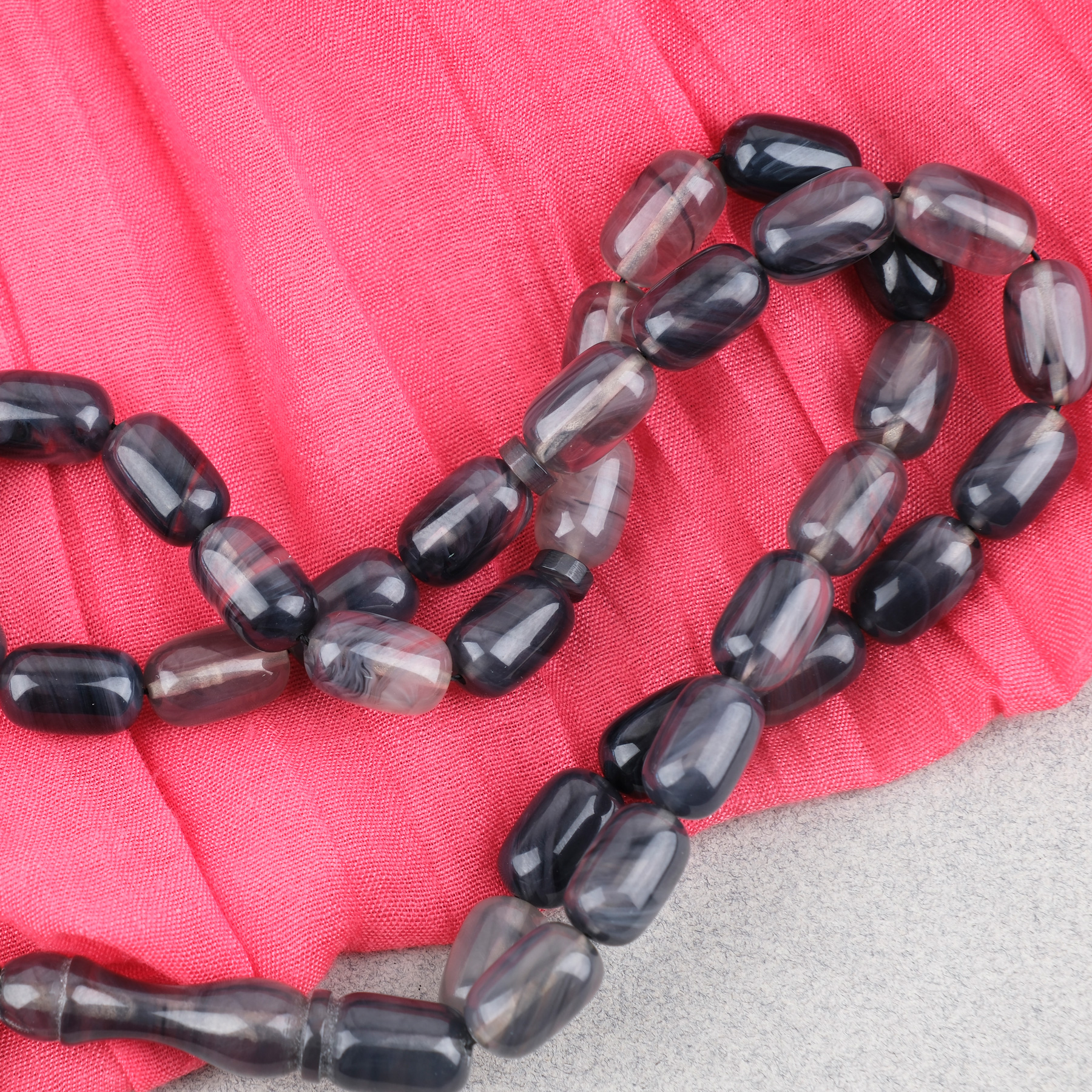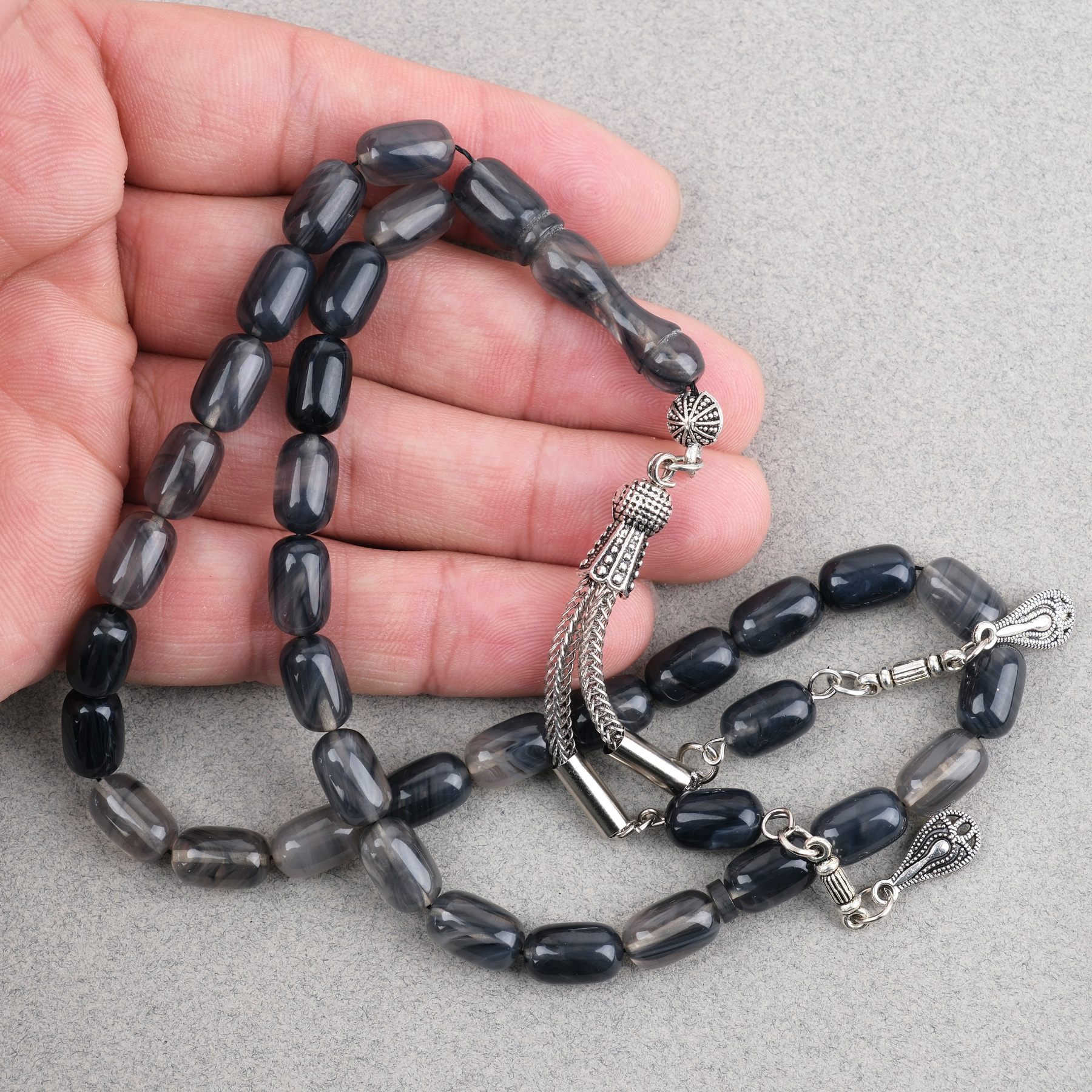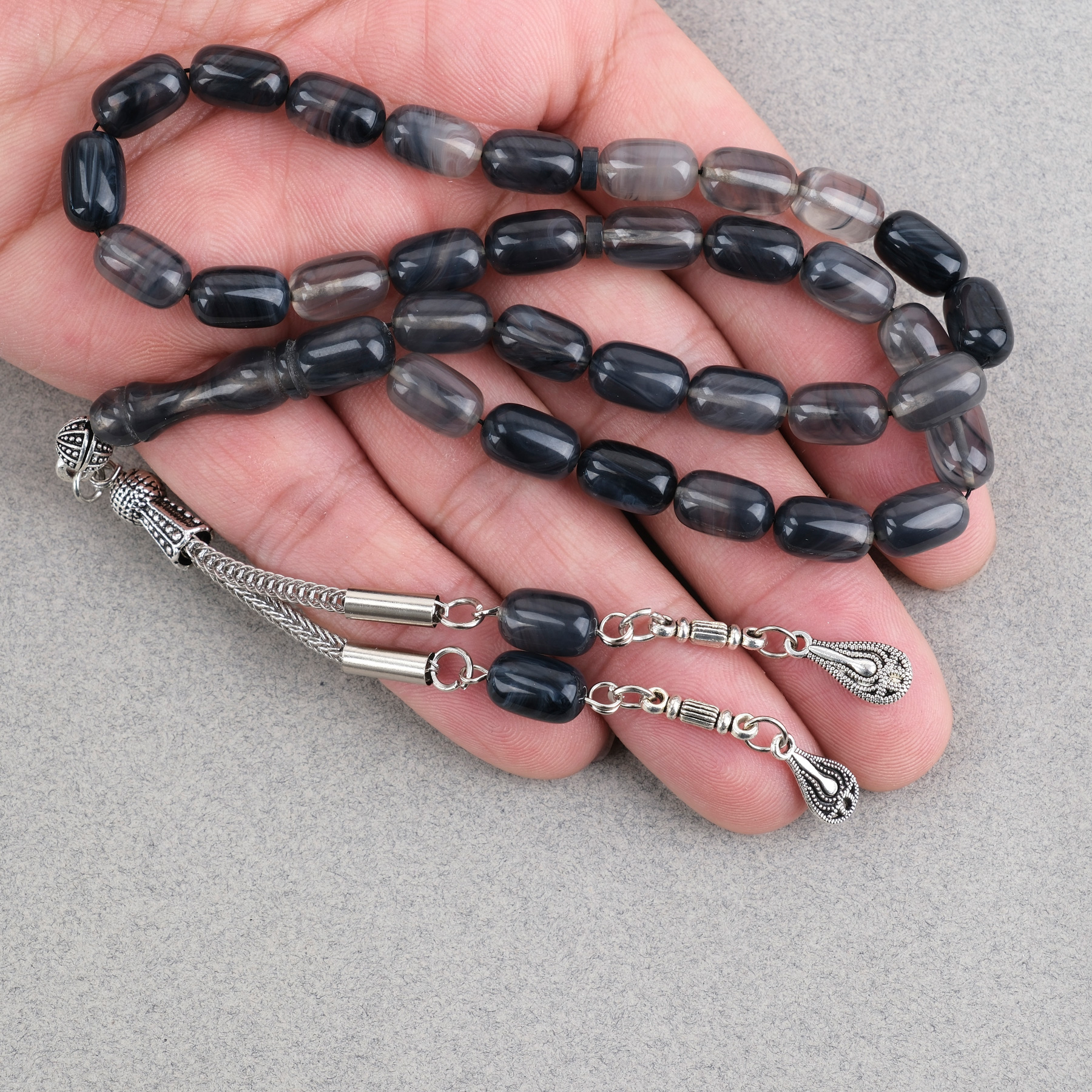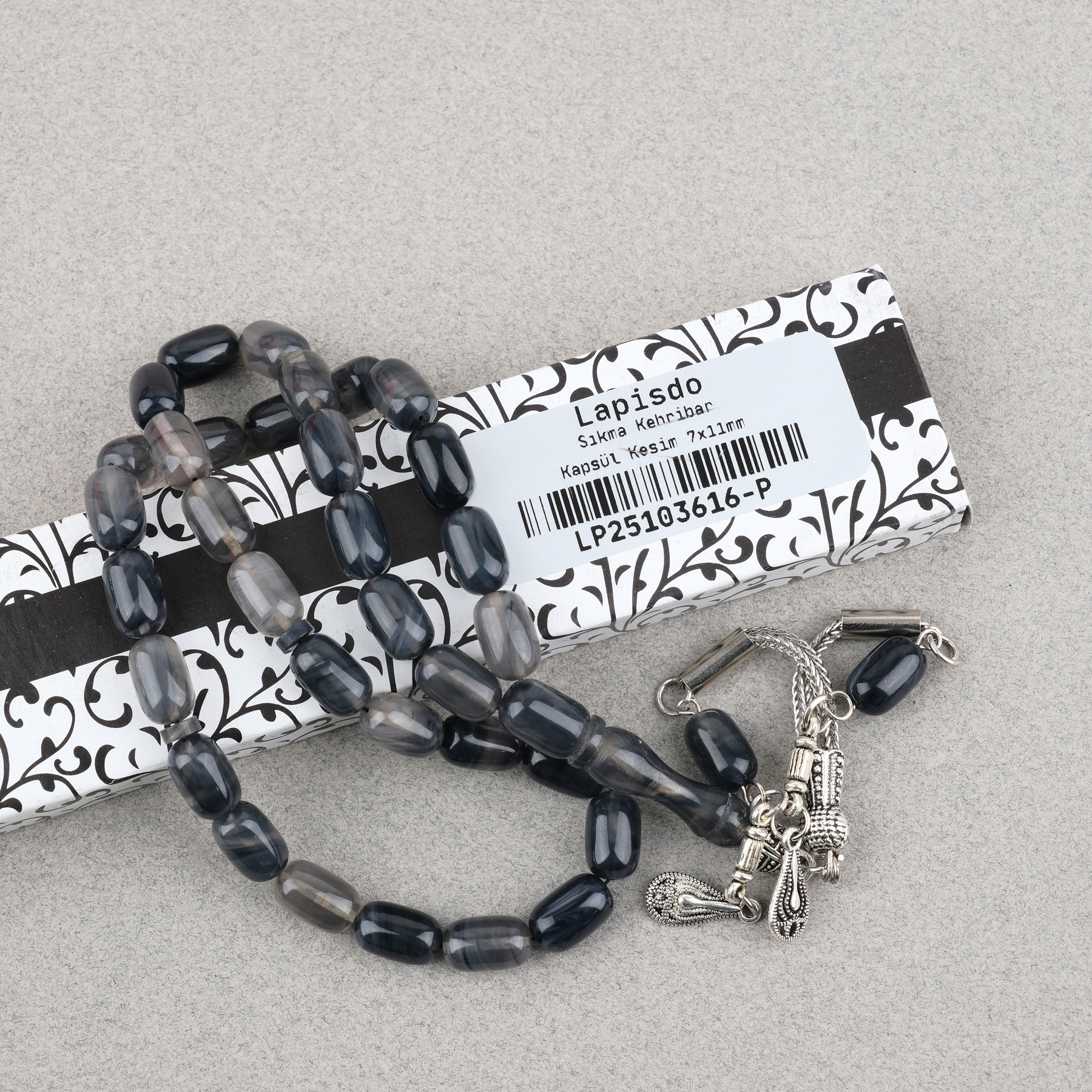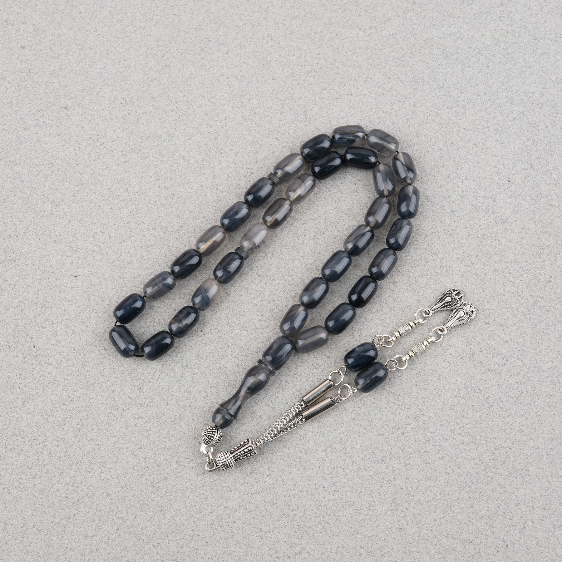 Sıkma Kehribar Kapsül Kesim Alpaka Püsküllü 7x11mm Tesbih Gri