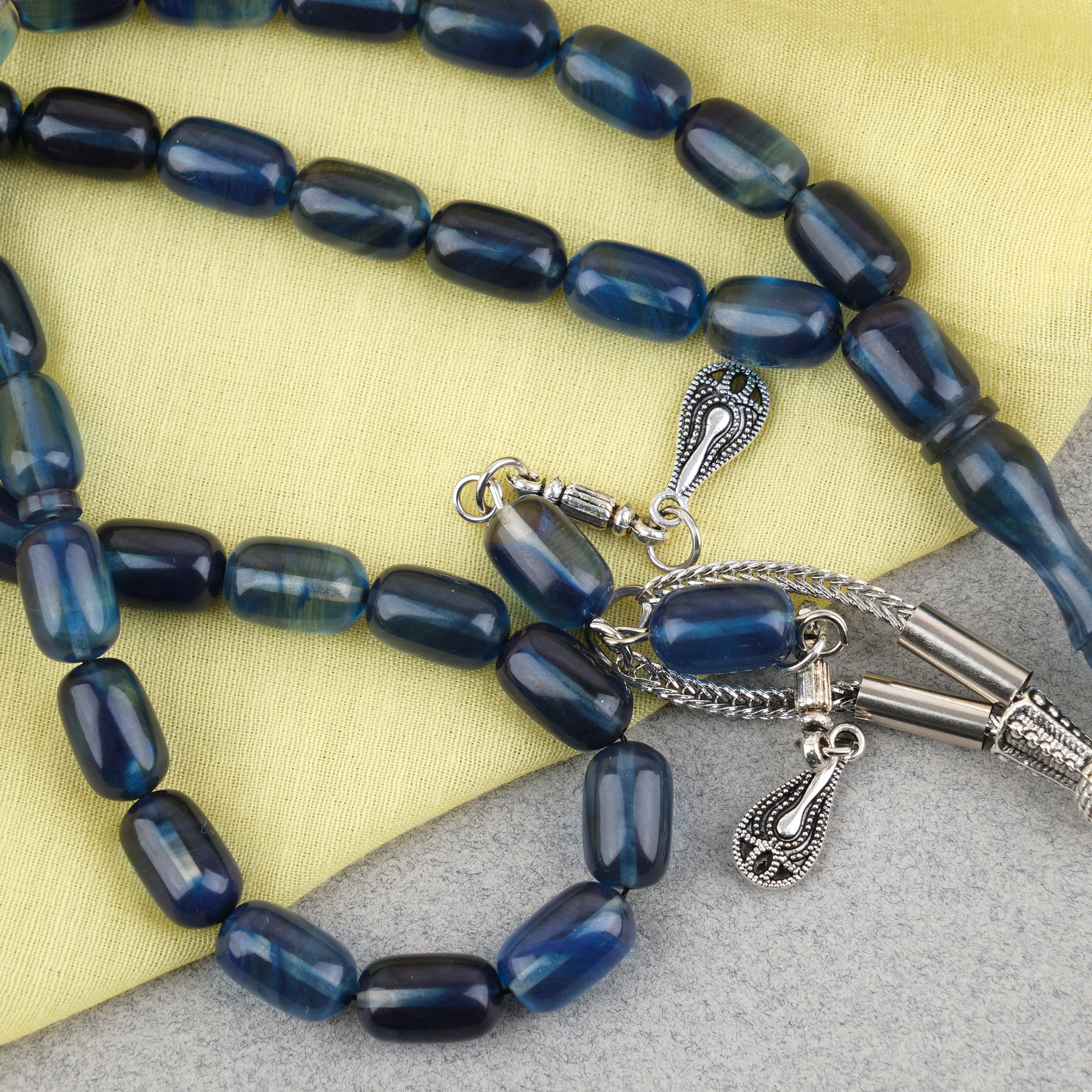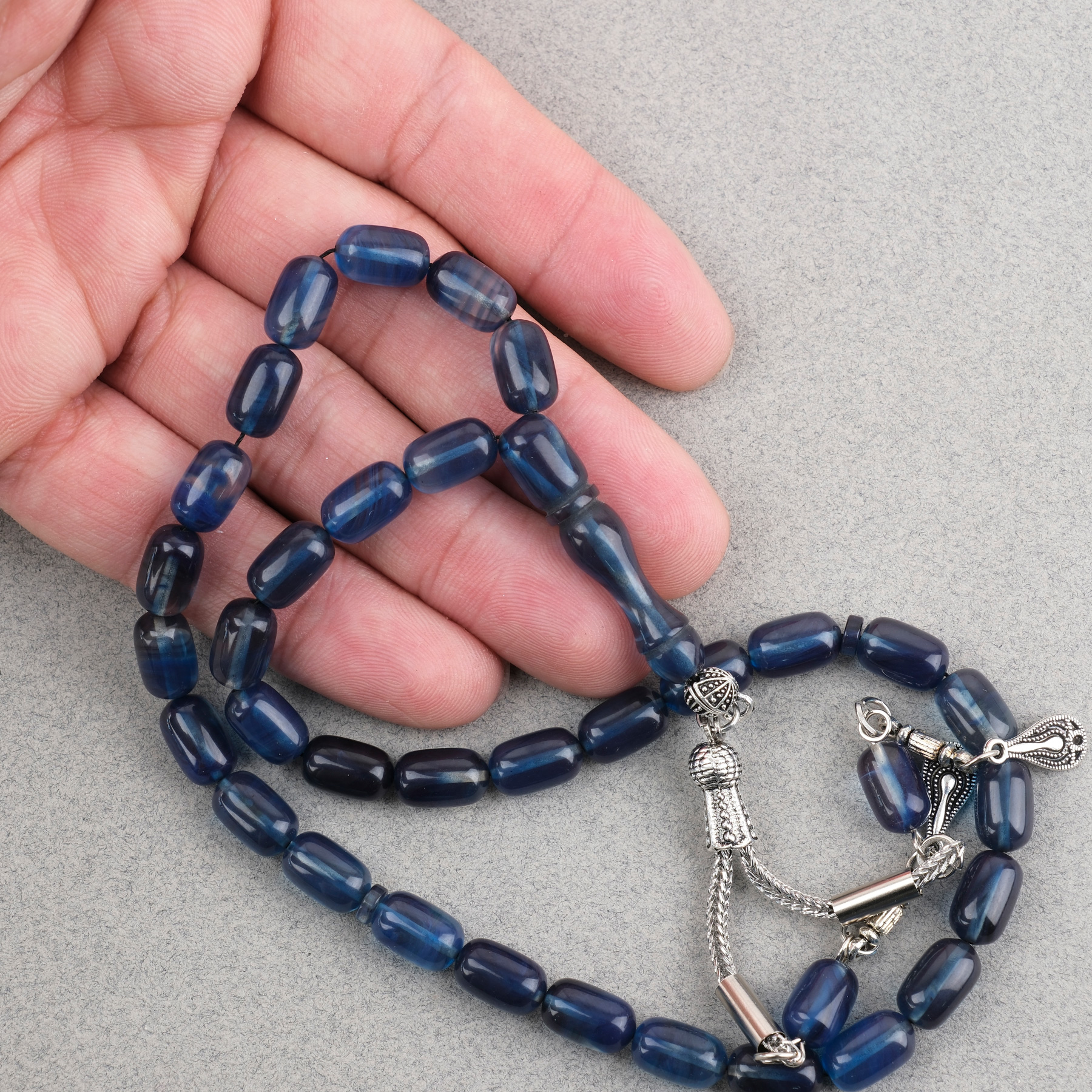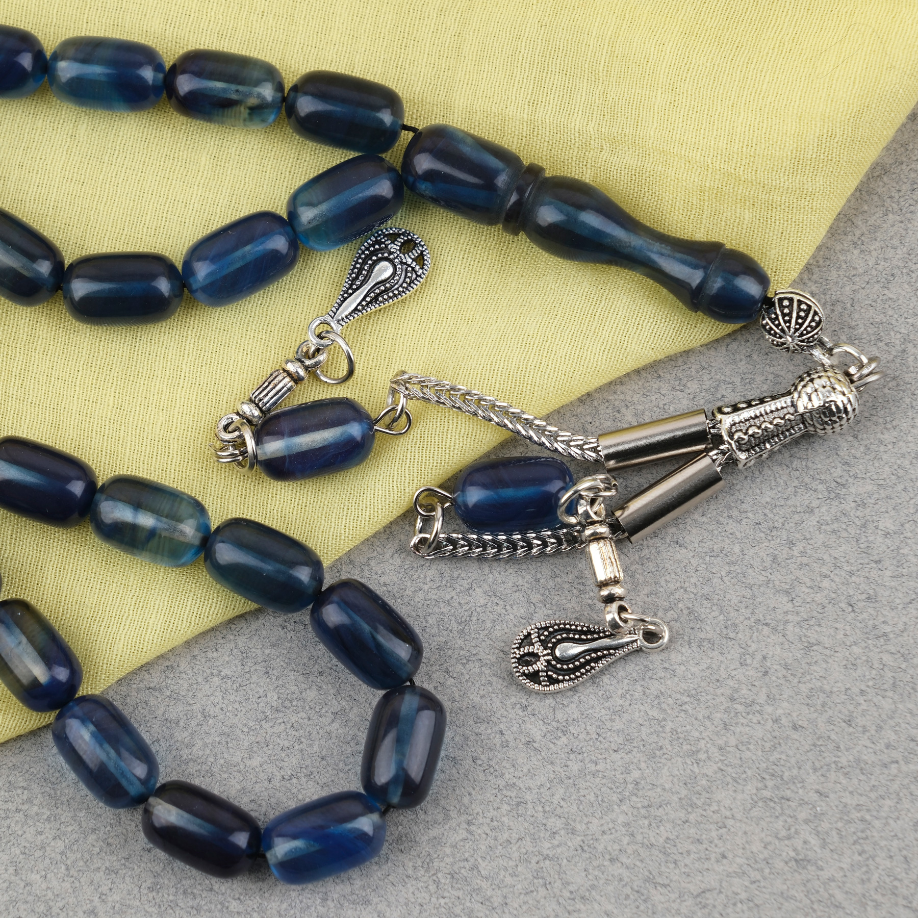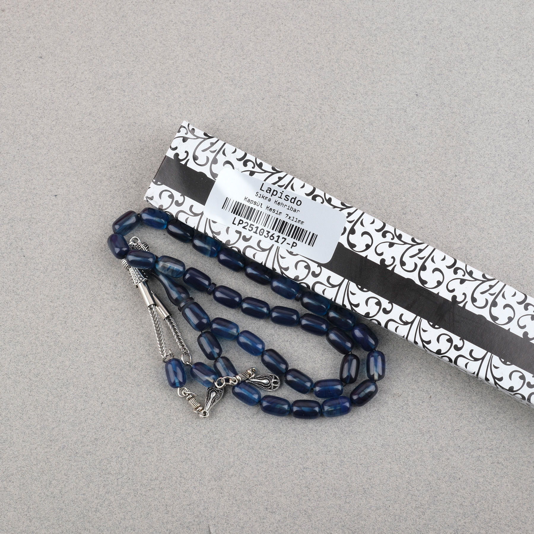 Sıkma Kehribar Kapsül Kesim Alpaka Püsküllü 7x11mm Tesbih