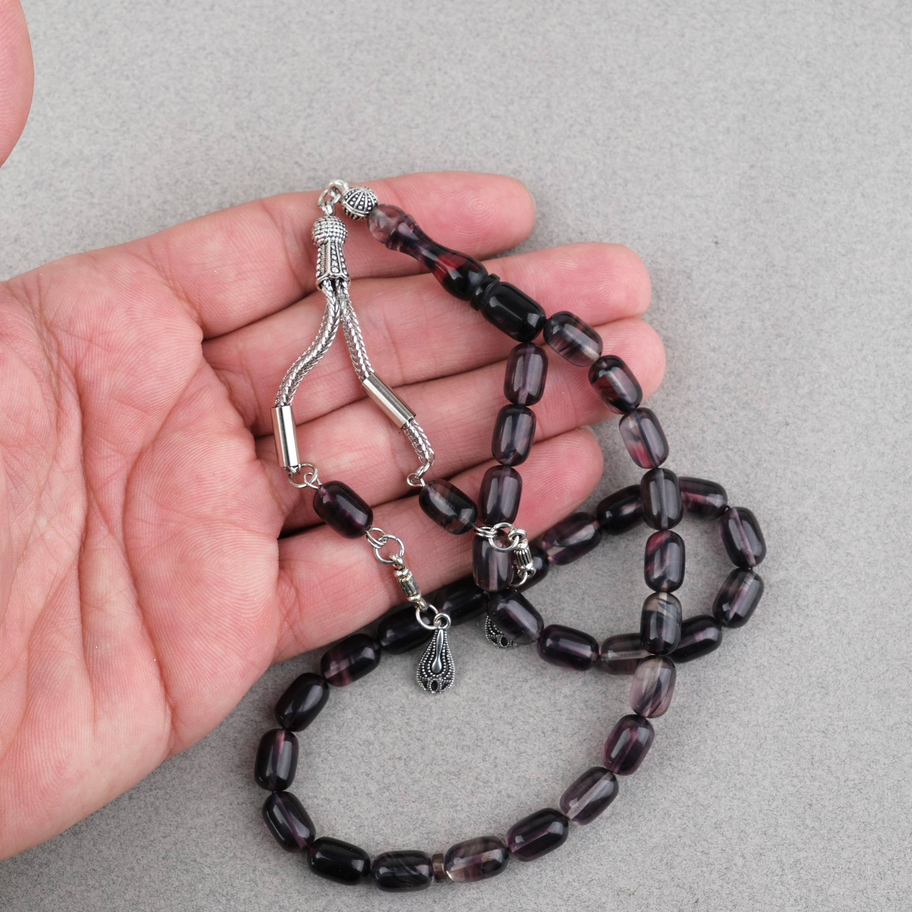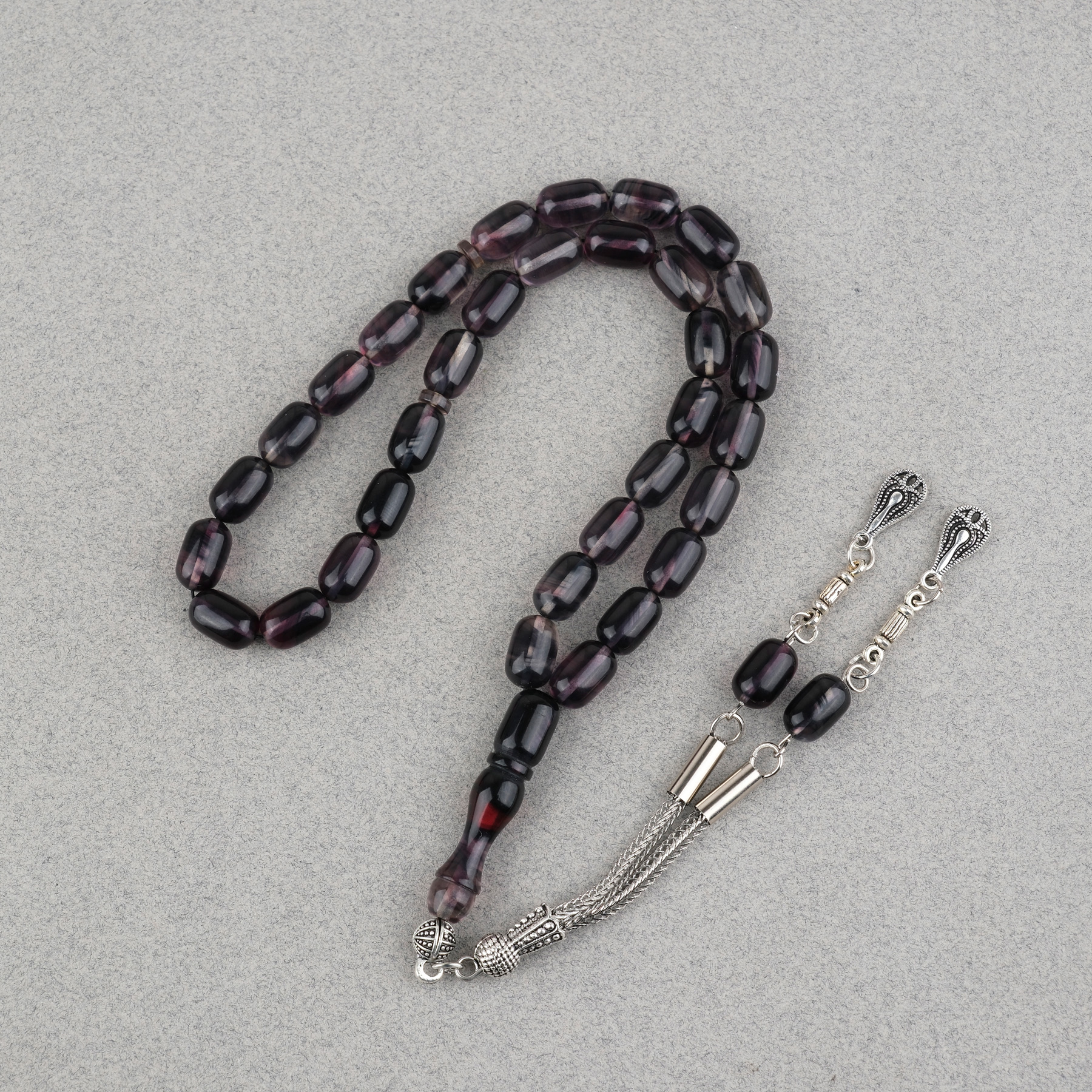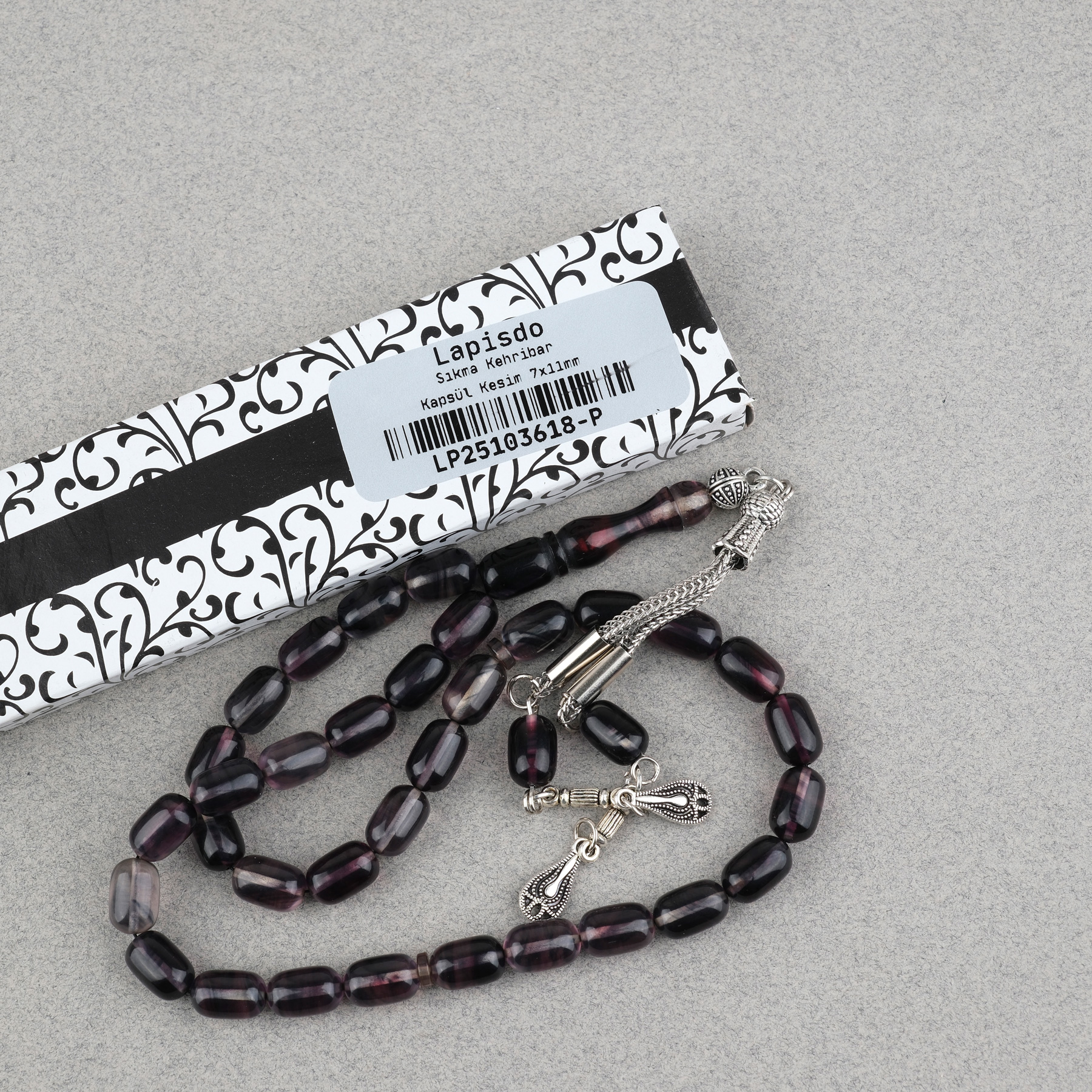 Sıkma Kehribar Kapsül Kesim Alpaka Püsküllü 7x11mm Tesbih