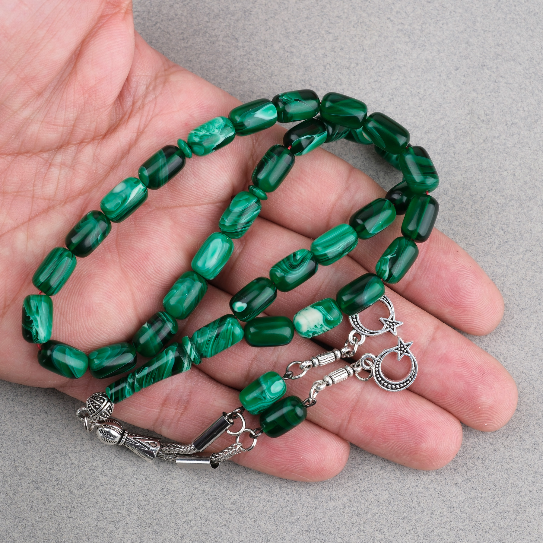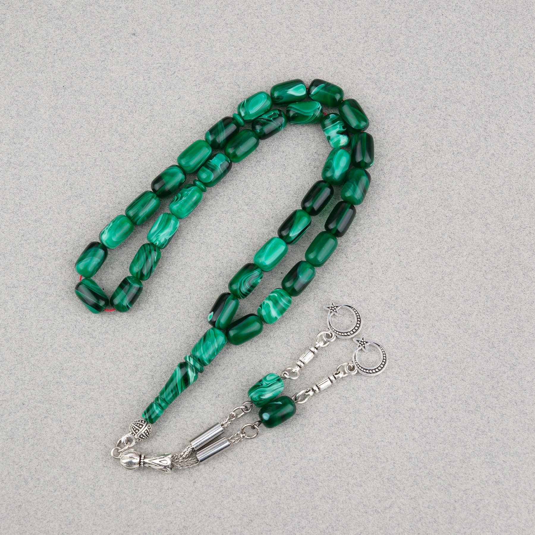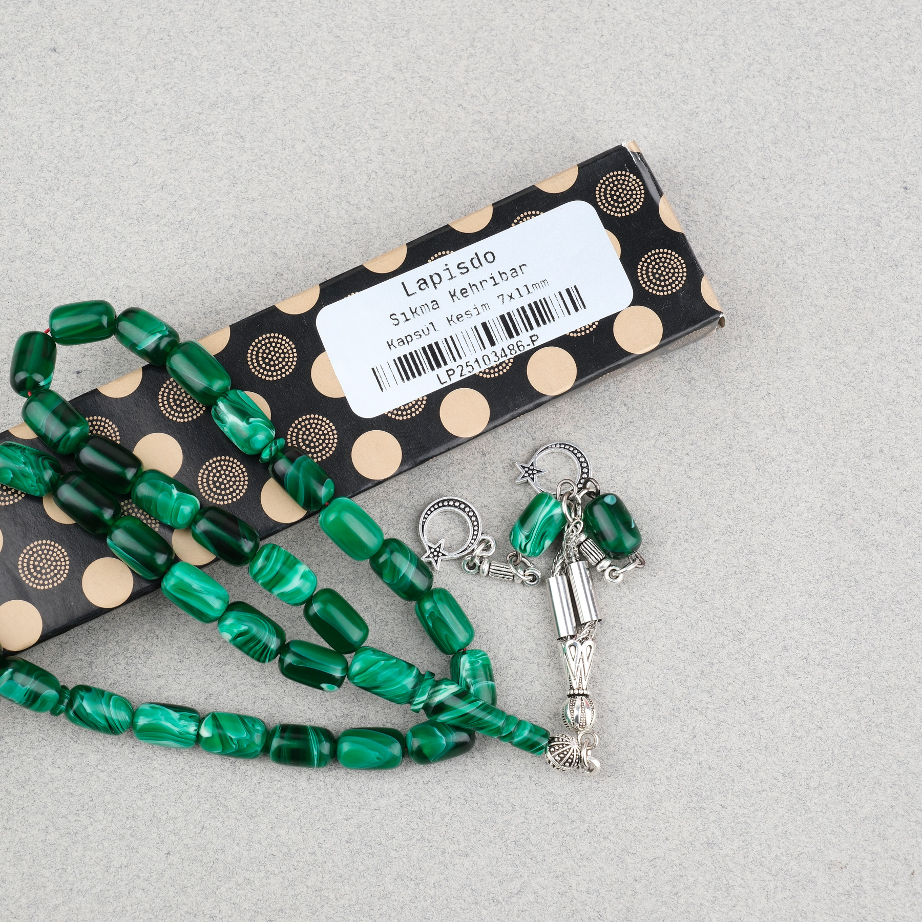 Sıkma Kehribar Kapsül Kesim Alpaka Püsküllü 7x11mm Tesbih