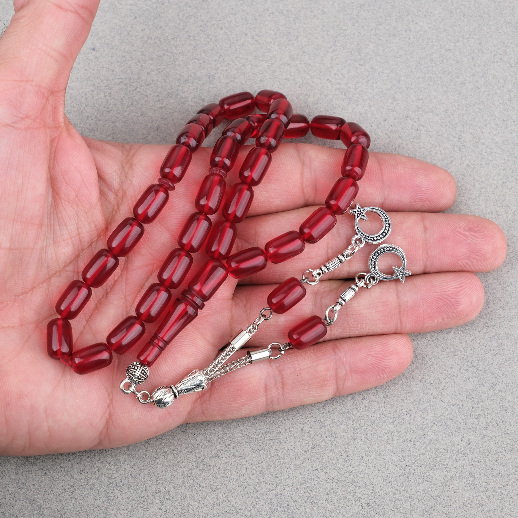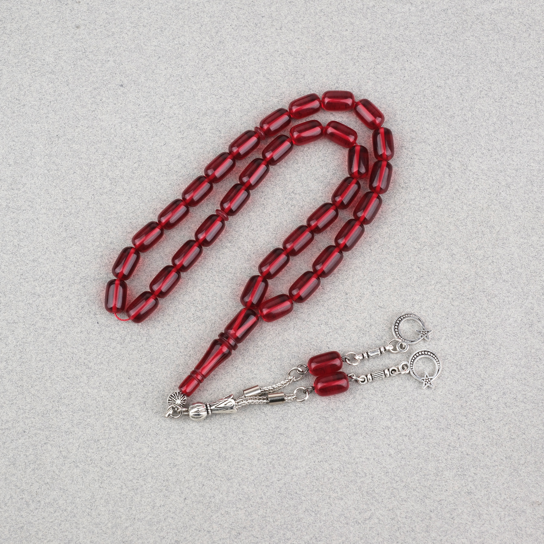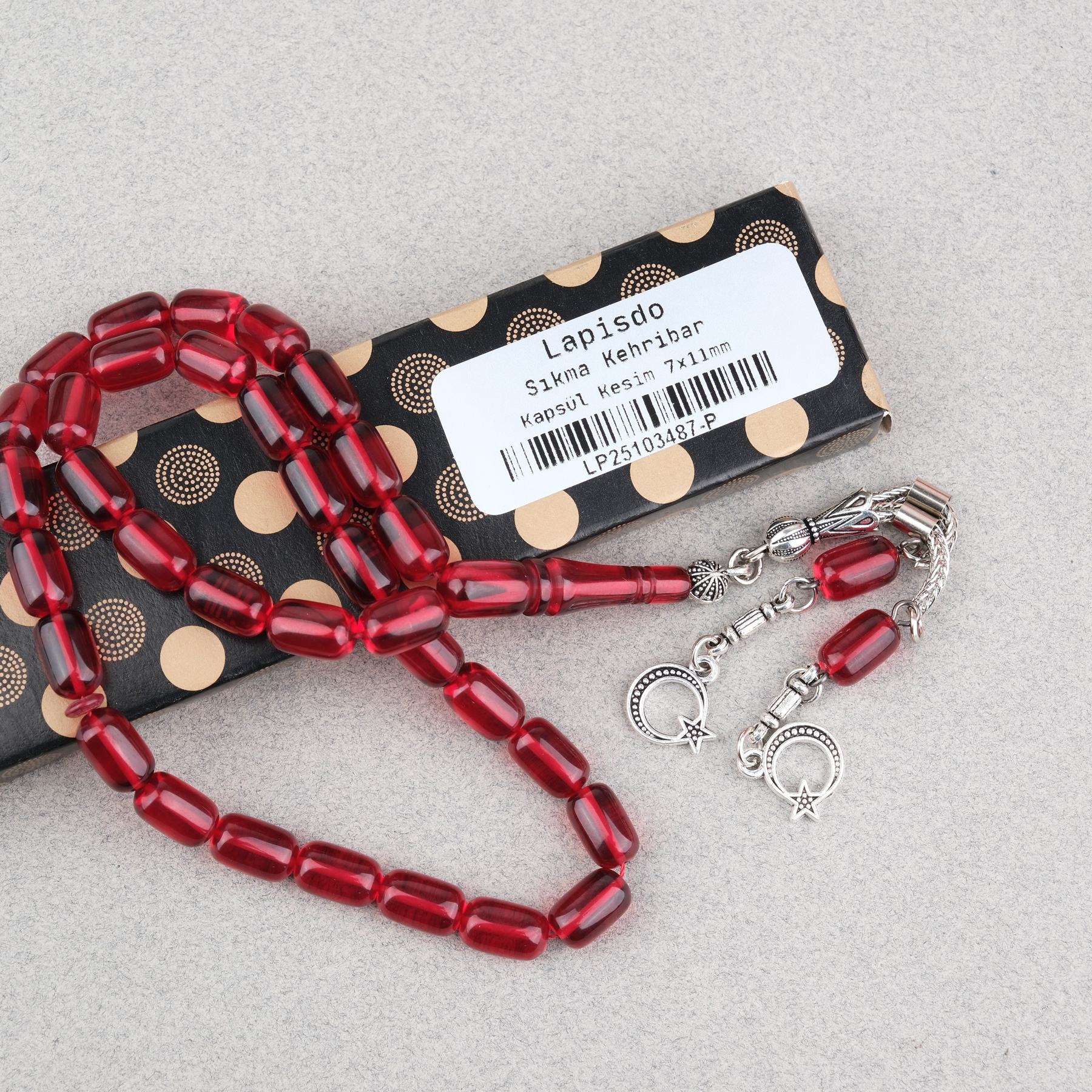 Sıkma Kehribar Kapsül Kesim Alpaka Püsküllü 7x11mm Tesbih