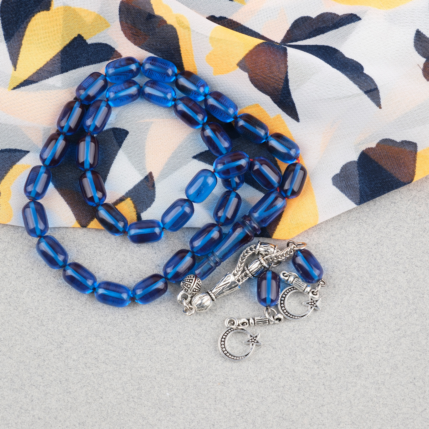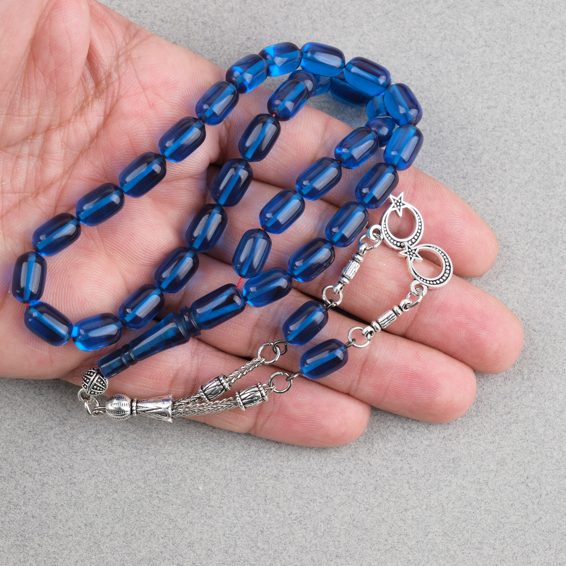 Sıkma Kehribar Kapsül Kesim Alpaka Püsküllü 7x11mm Tesbih