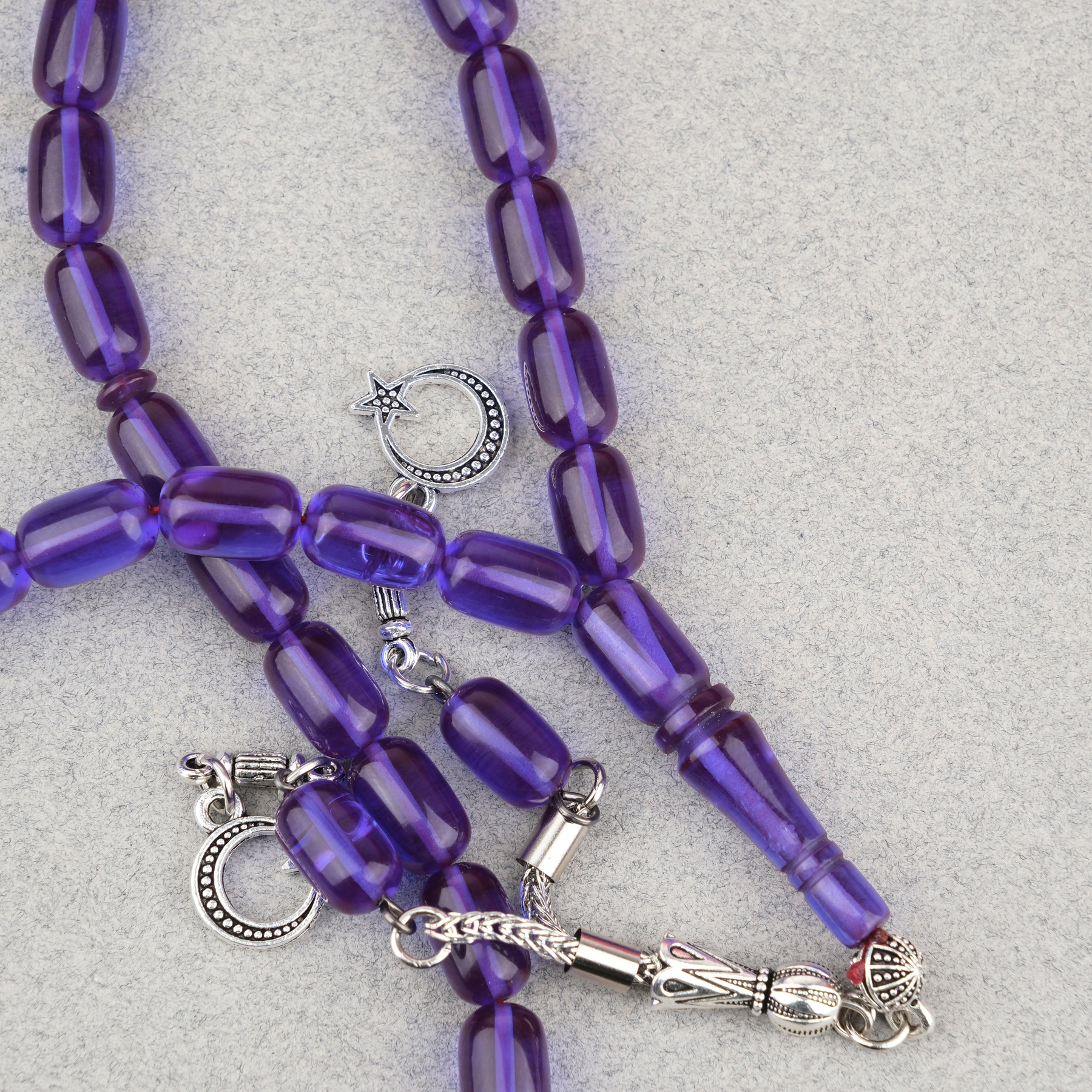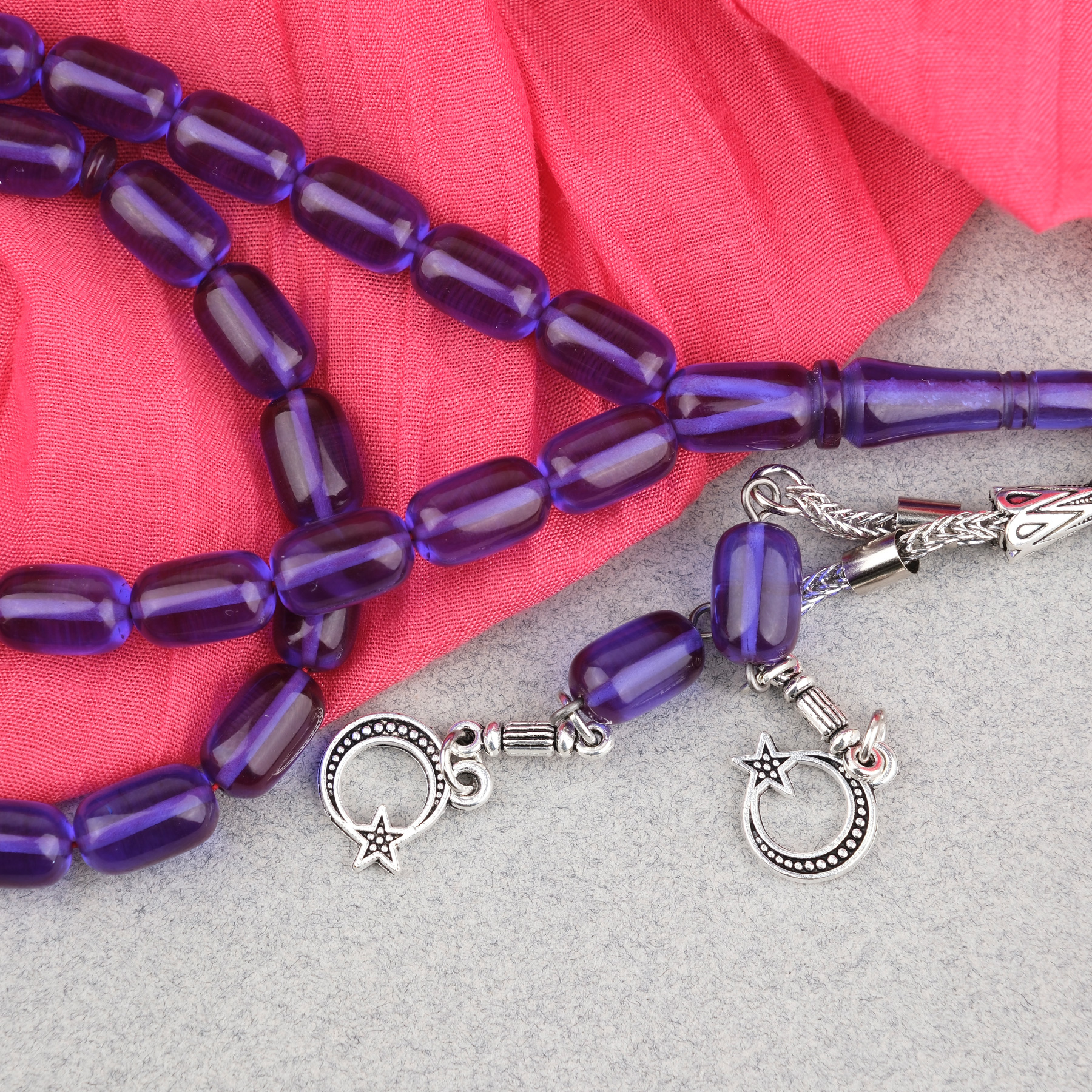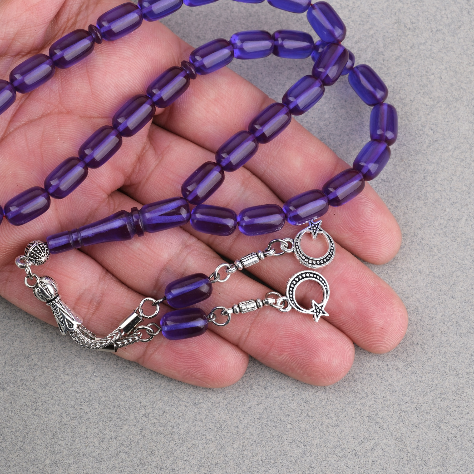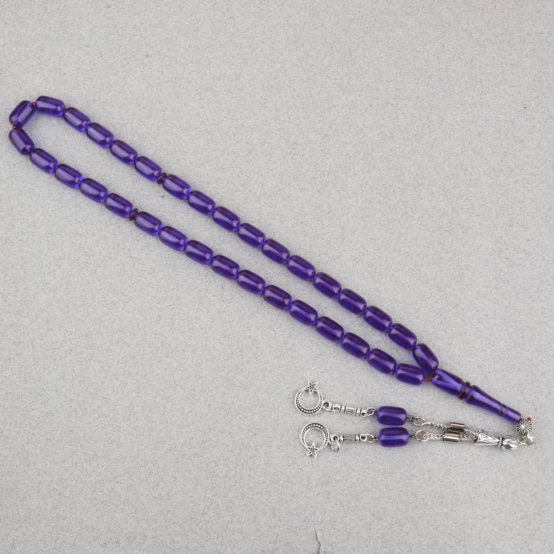 Sıkma Kehribar Kapsül Kesim Alpaka Püsküllü 7x11mm Tesbih