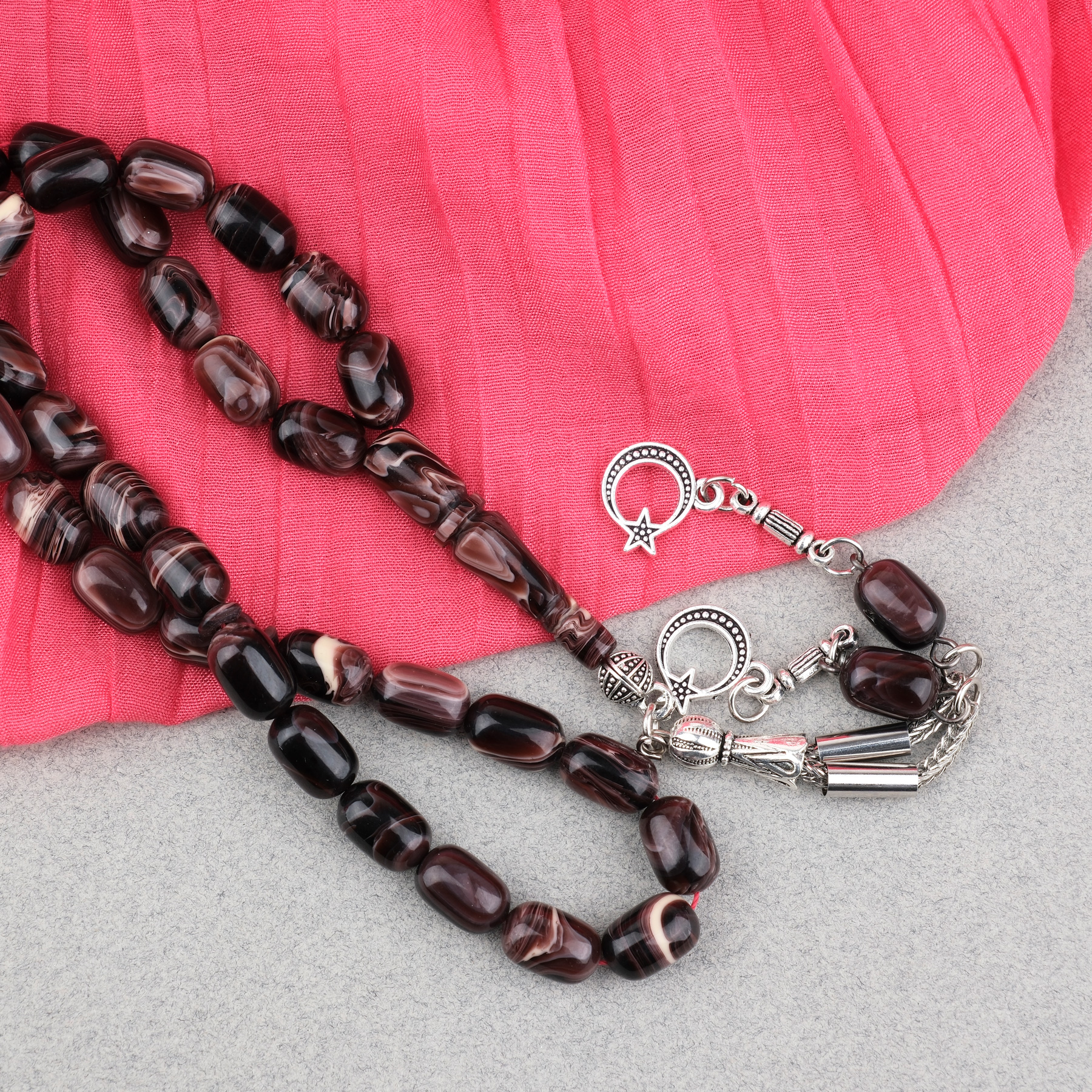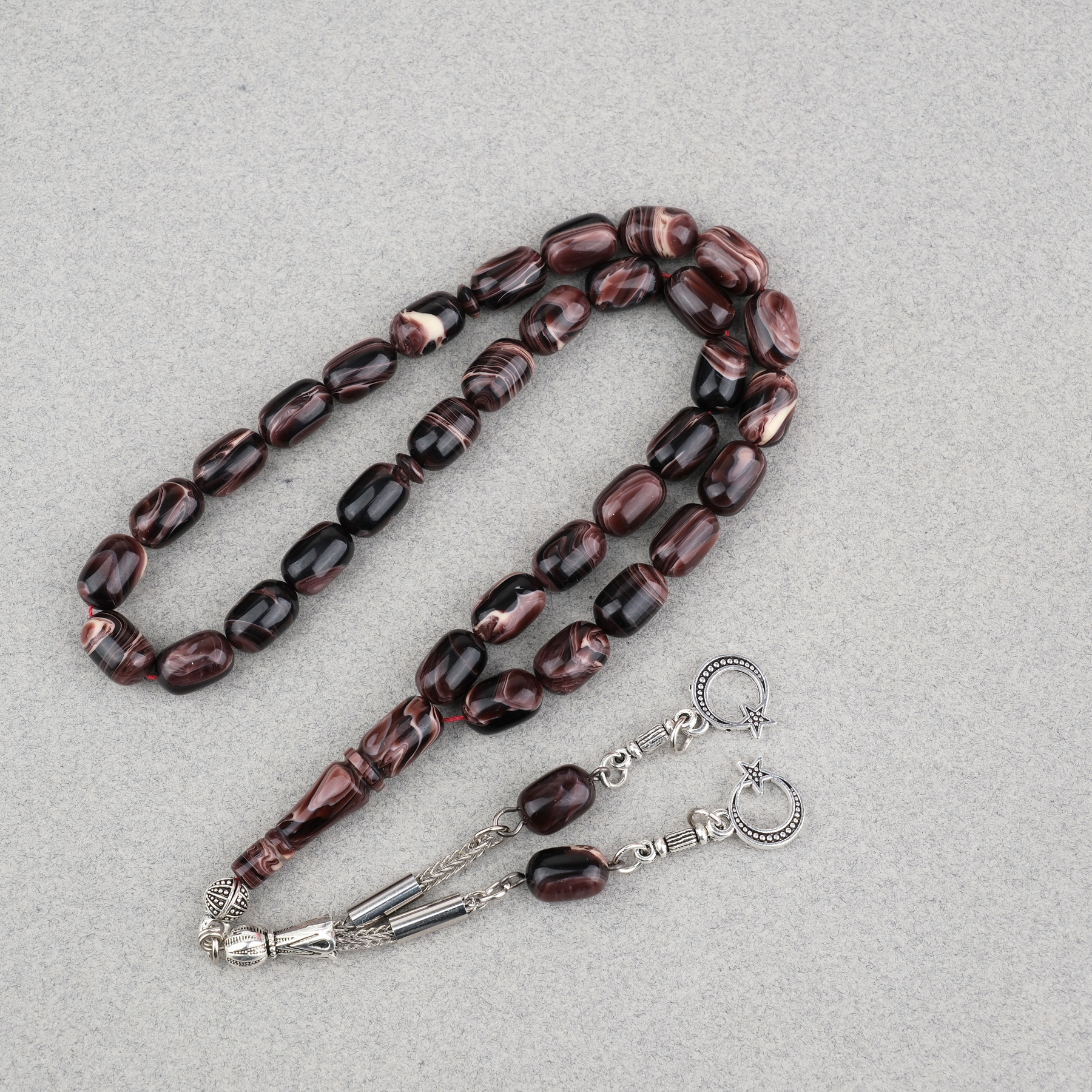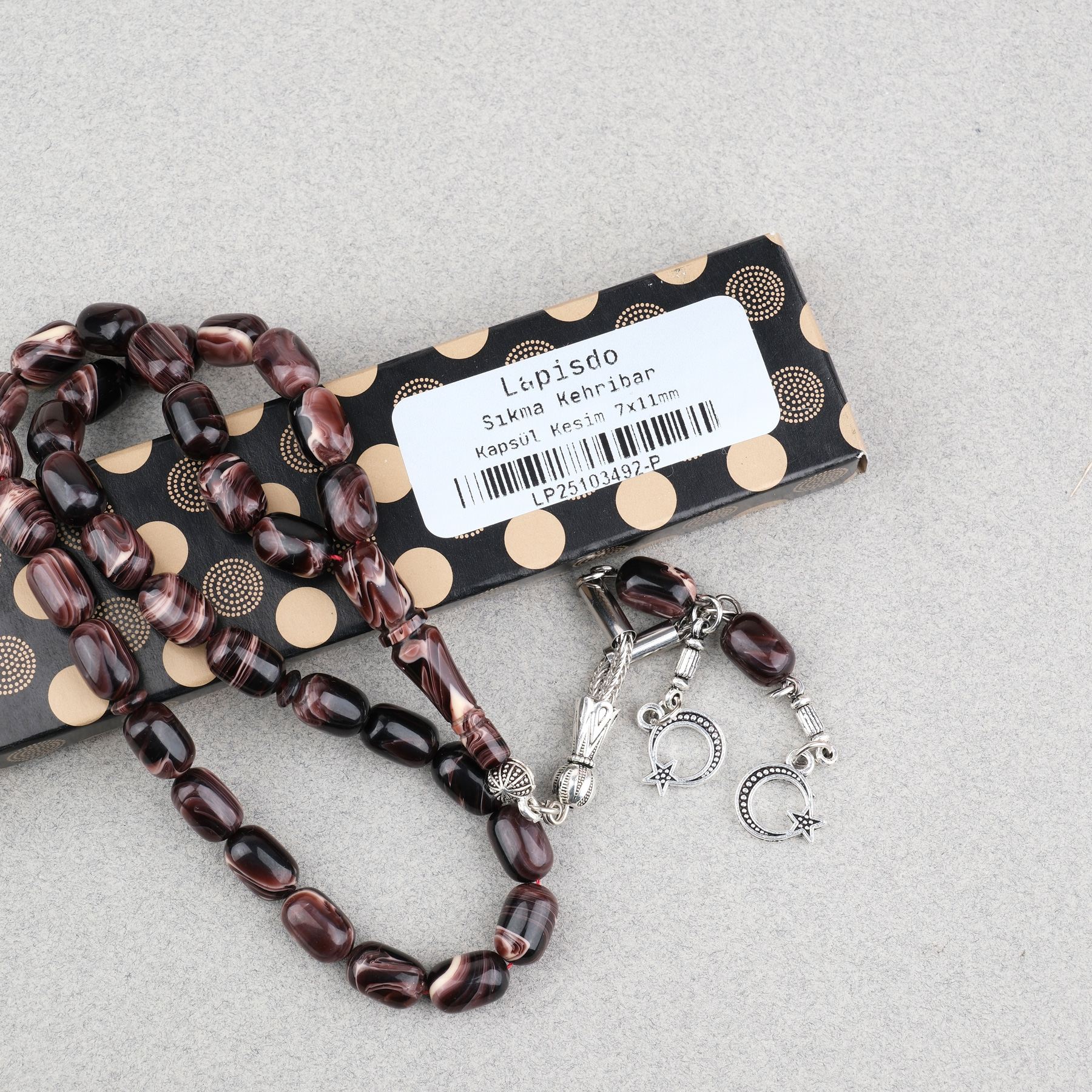 Sıkma Kehribar Kapsül Kesim Alpaka Püsküllü 7x11mm Tesbih