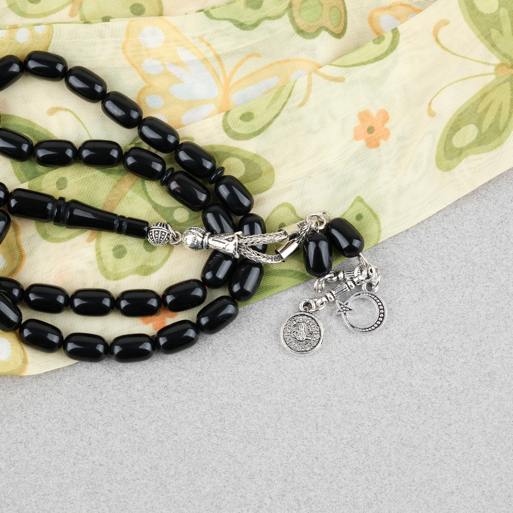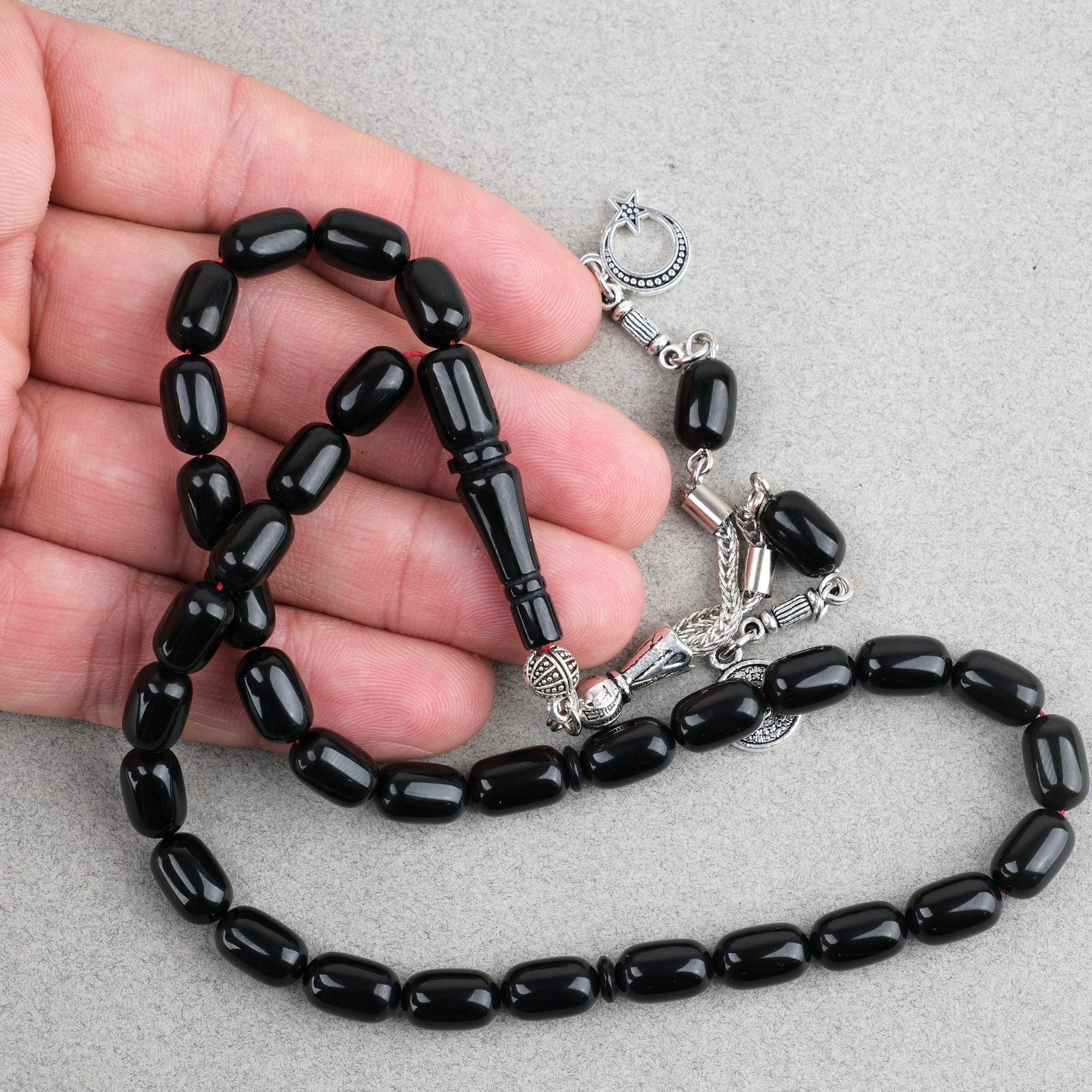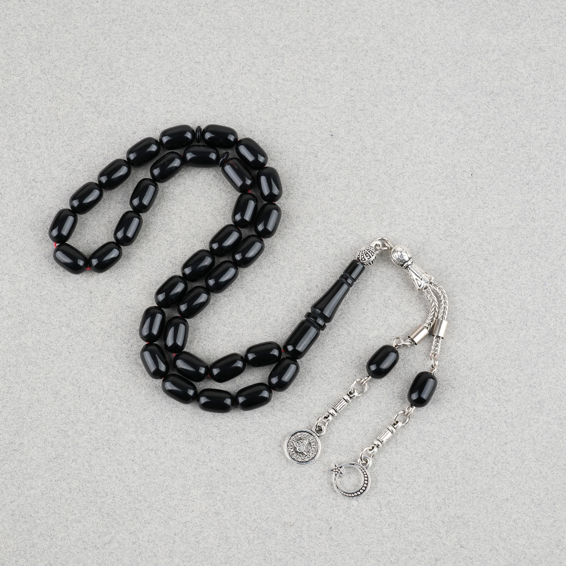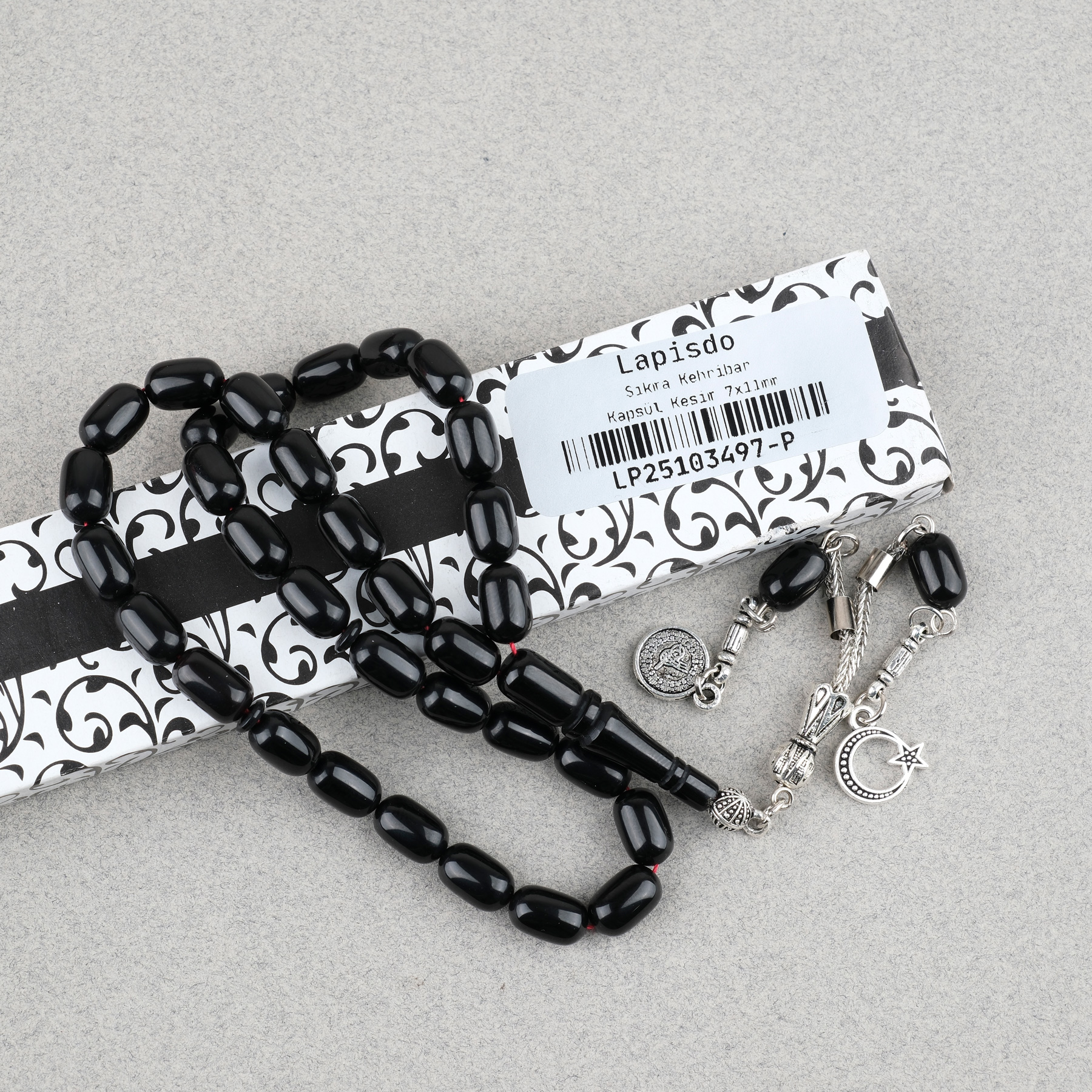 Sıkma Kehribar Kapsül Kesim Alpaka Püsküllü 7x11mm Tesbih