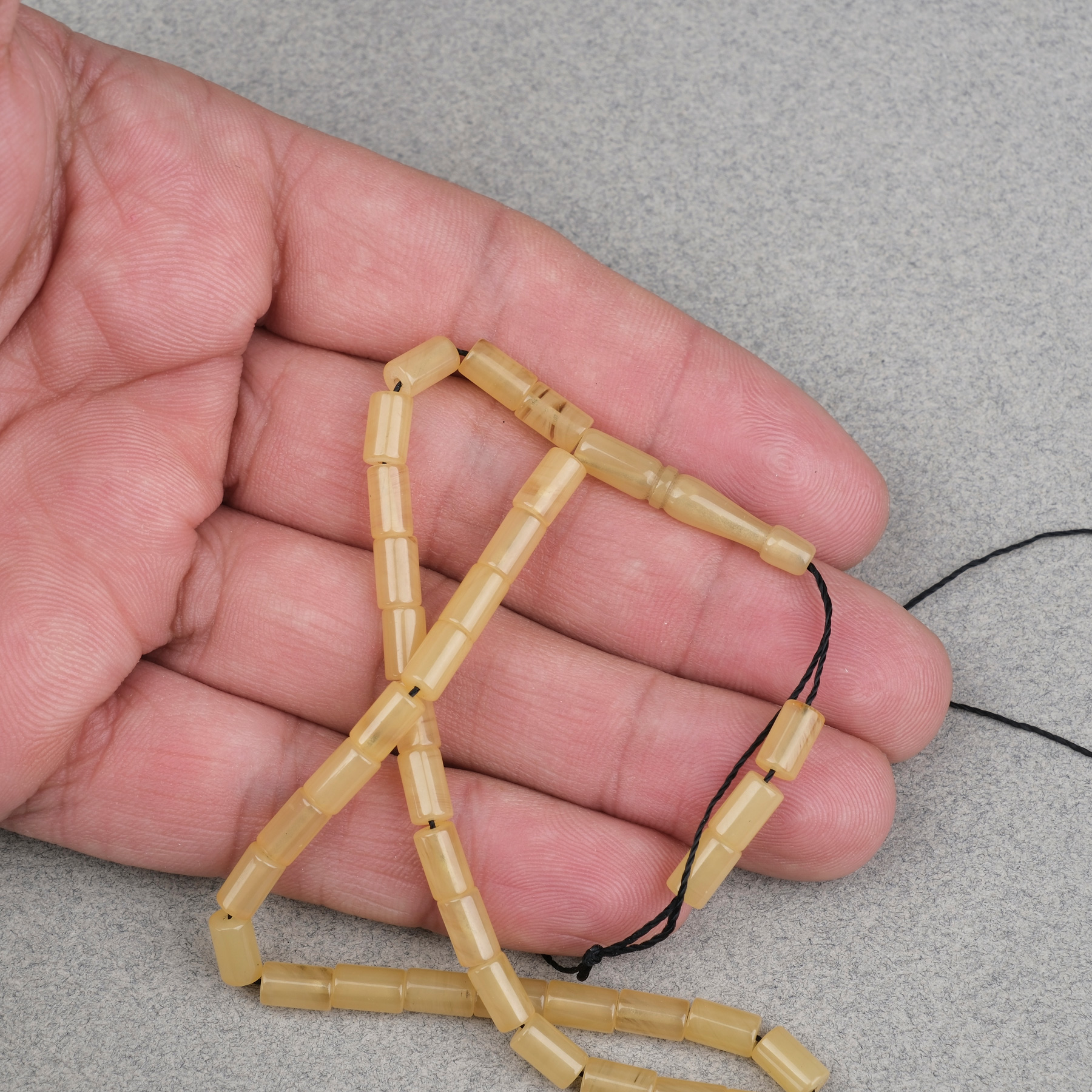 Sıkma Kehribar Kesme Kesim 4x7mm Tesbih- Açık Sarı