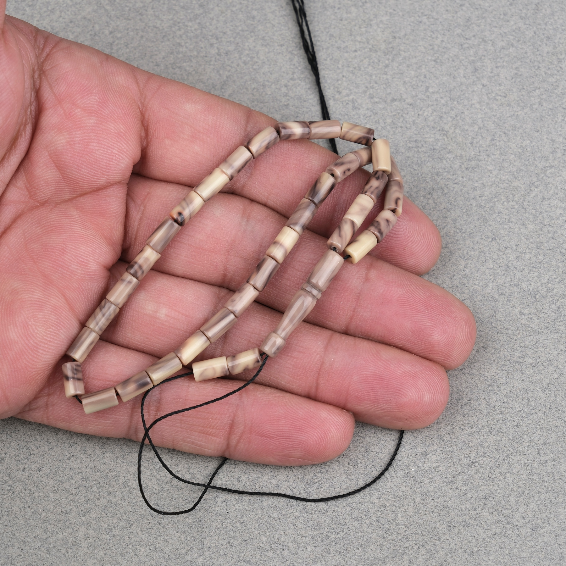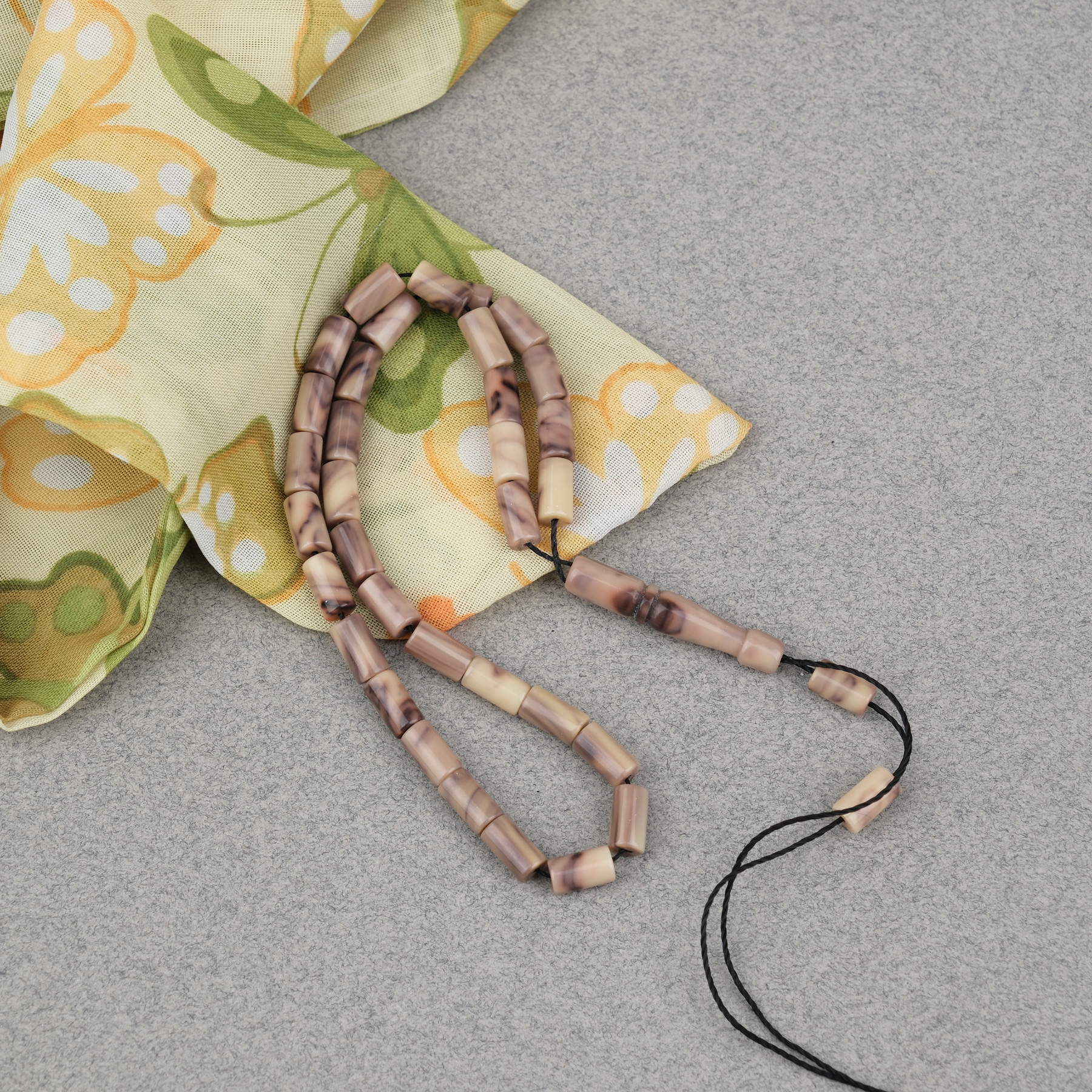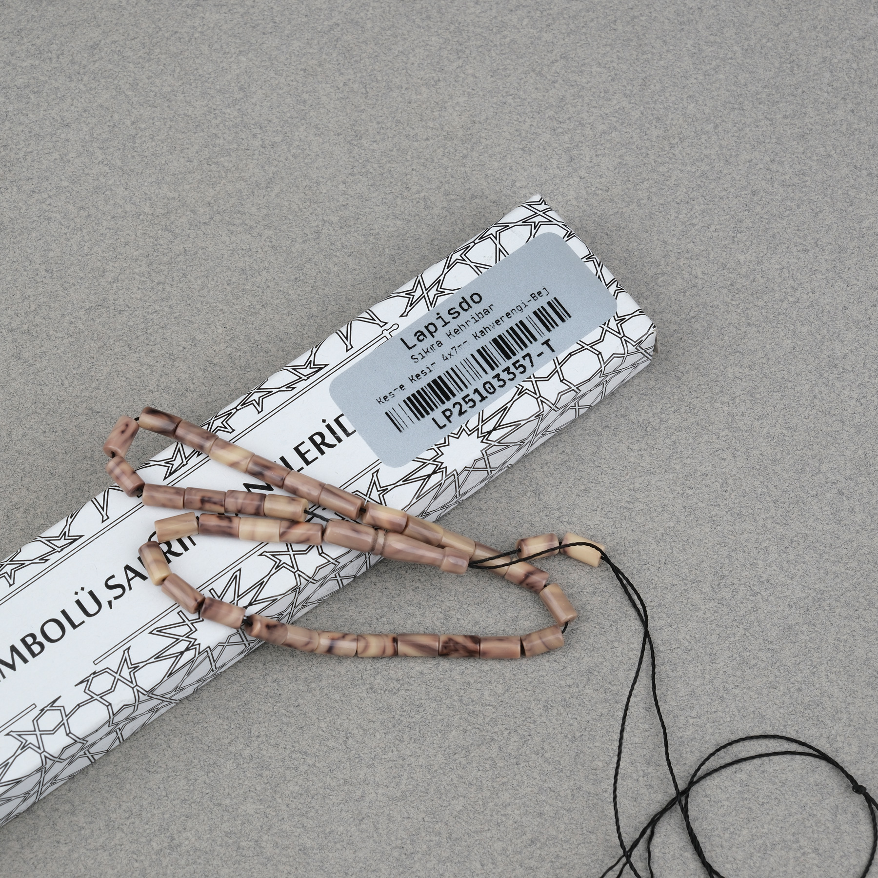 Sıkma Kehribar Kesme Kesim 4x7mm Tesbih- Kahverengi-Bej
