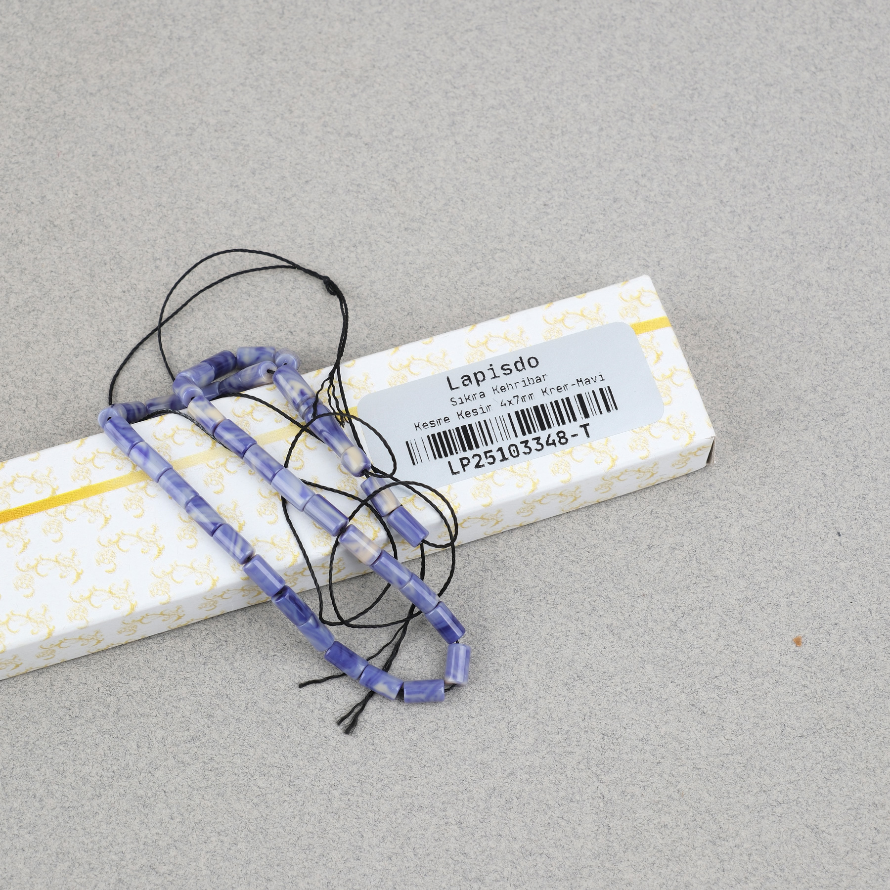 Sıkma Kehribar Kesme Kesim 4x7mm Tesbih- Krem- Mavi