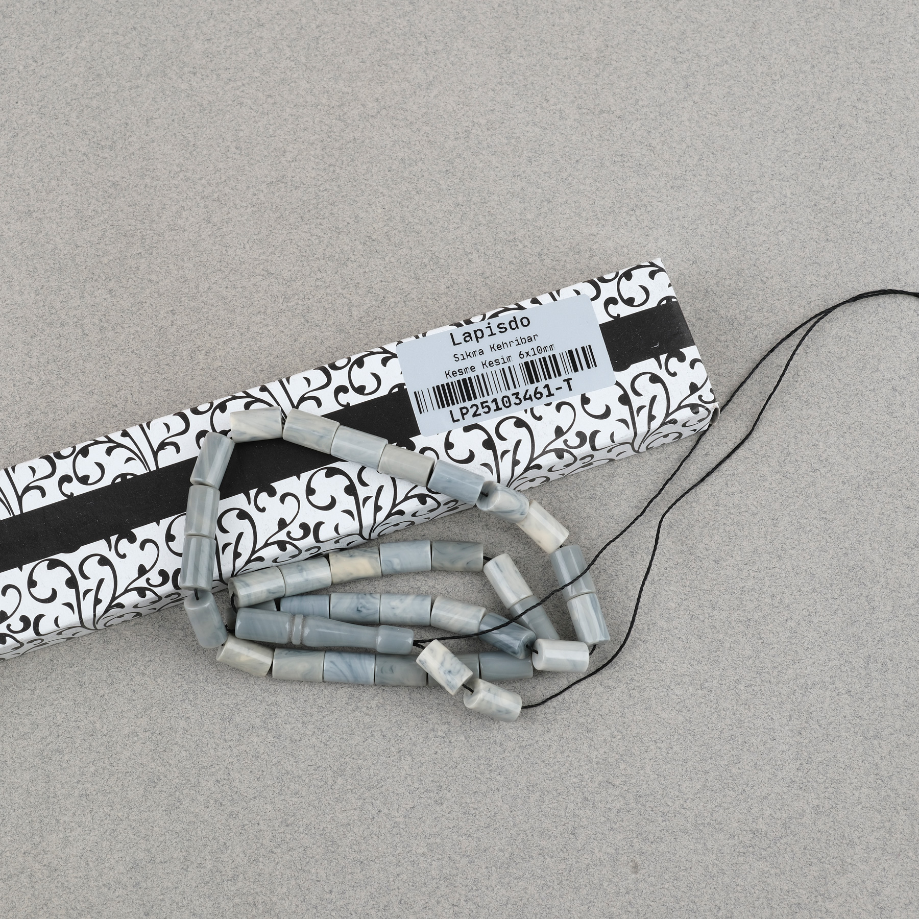 Sıkma Kehribar Kesme Kesim 6x10mm Tesbih Püskülsüz