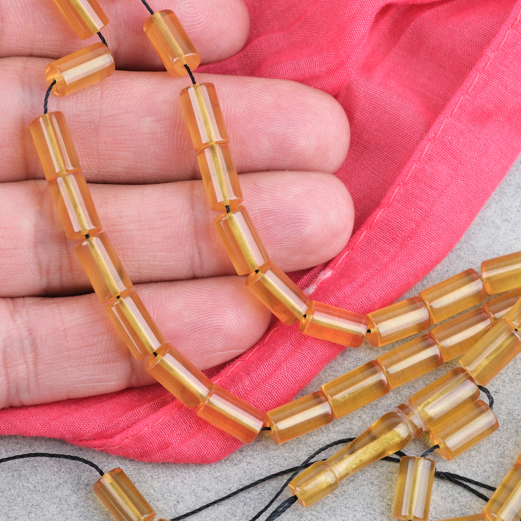 Sıkma Kehribar Kesme Kesim 6x10mm Tesbih Püskülsüz