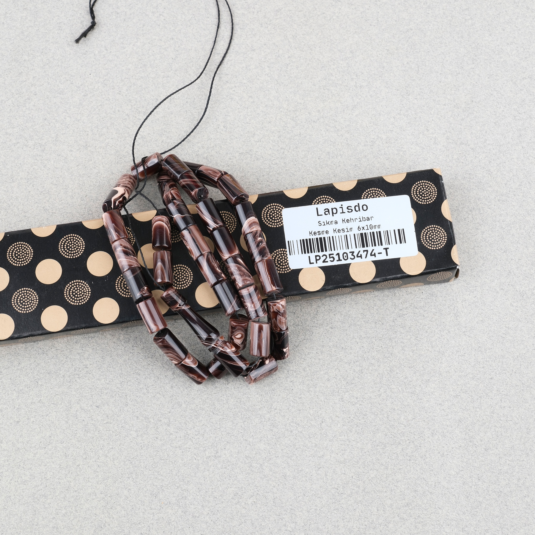 Sıkma Kehribar Kesme Kesim 6x10mm Tesbih Püskülsüz