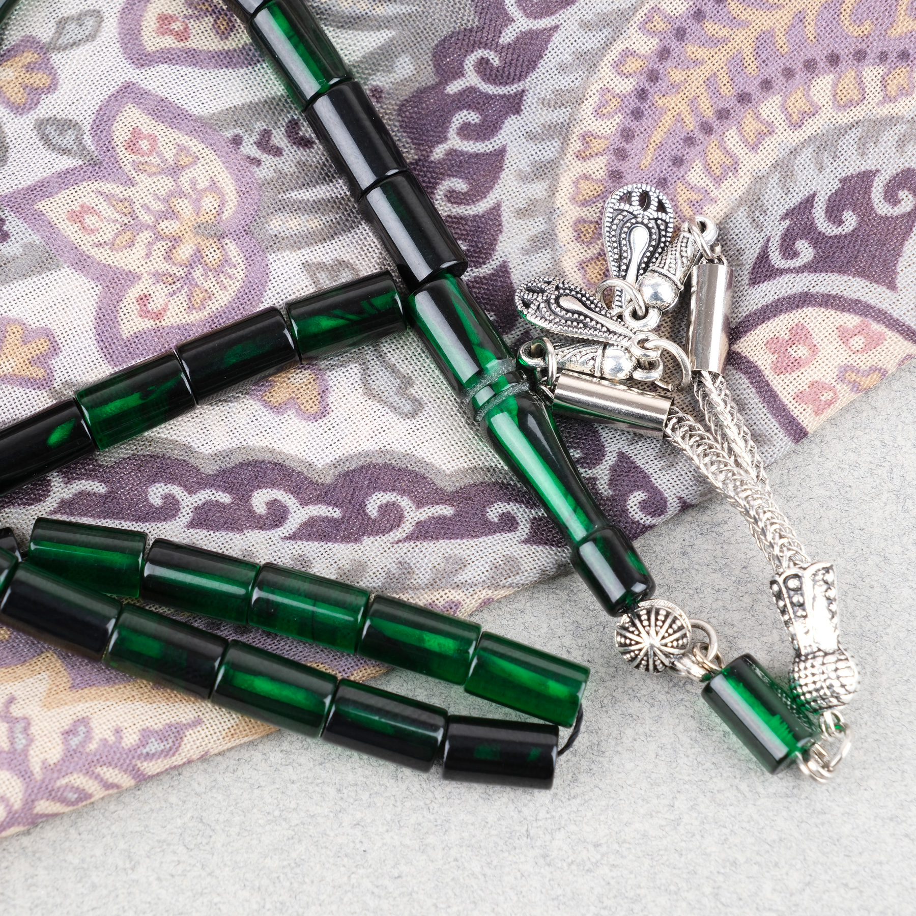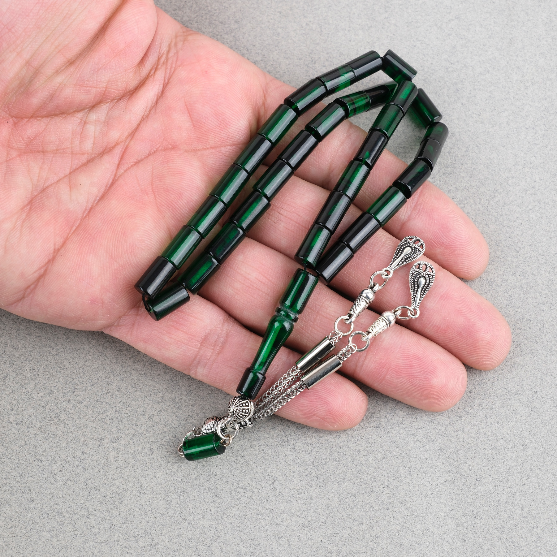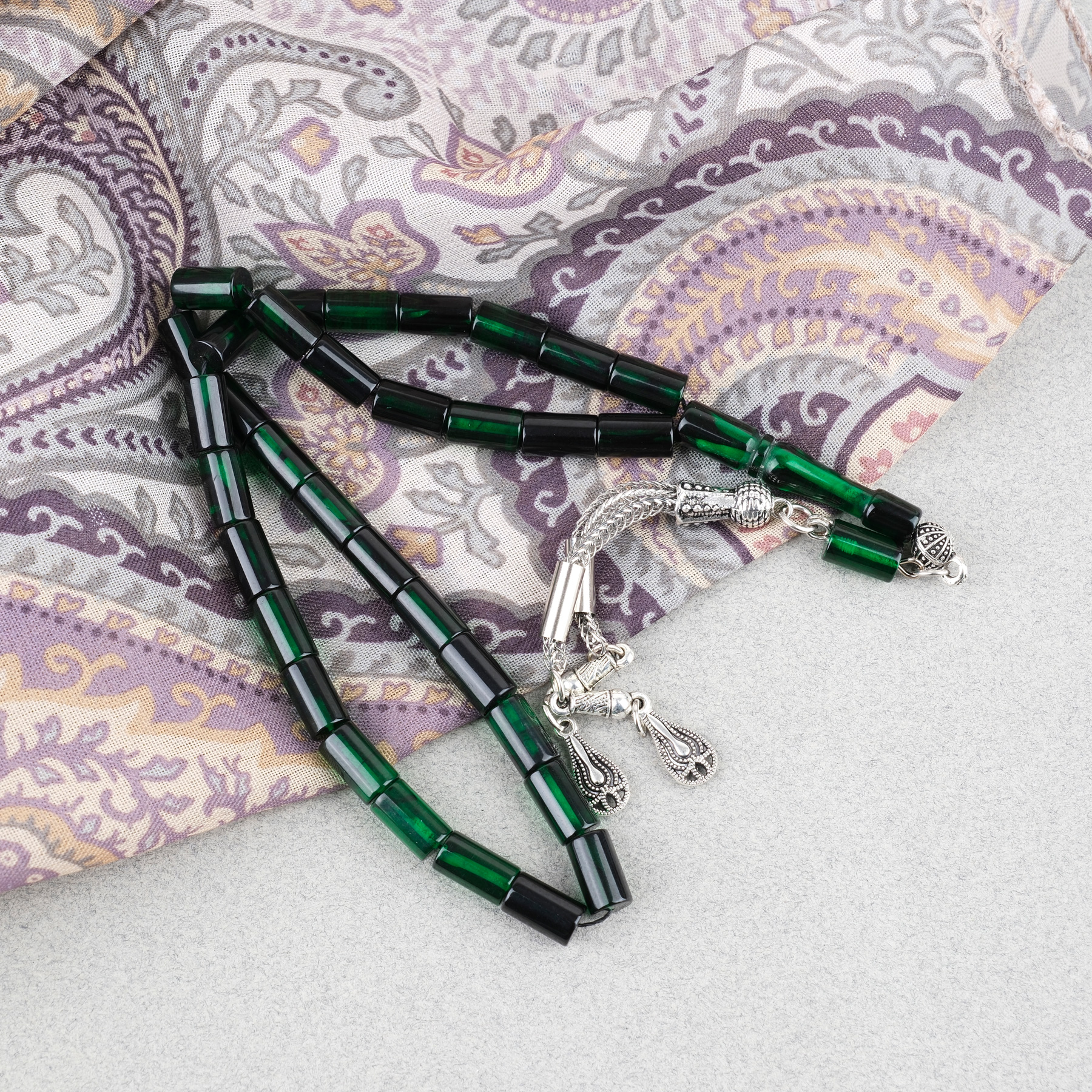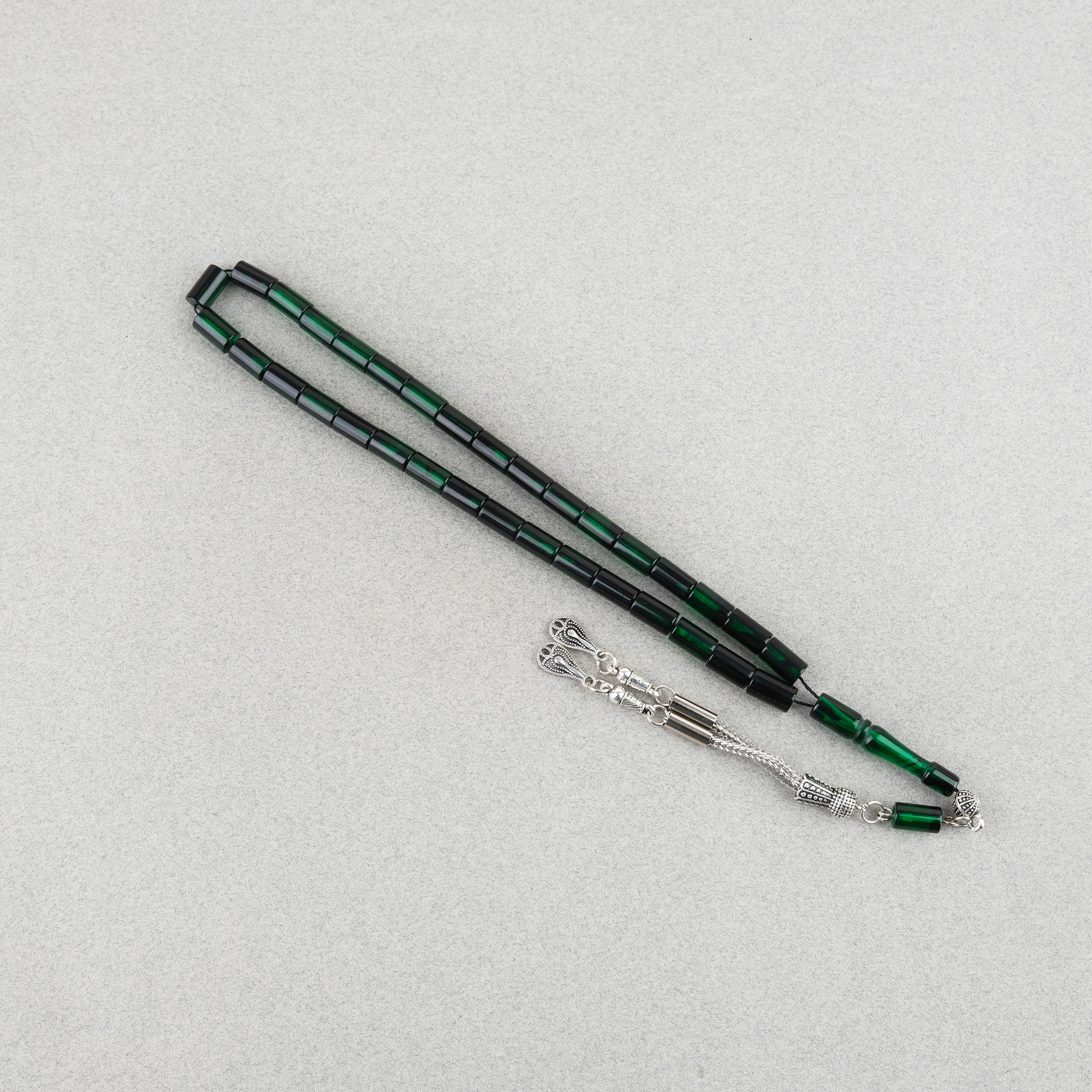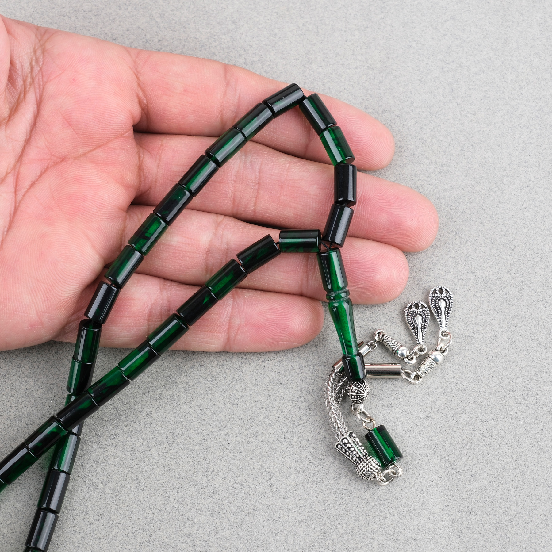 Sıkma Kehribar Kesme Kesim Alpaka Püsküllü 6x10mm Tesbih