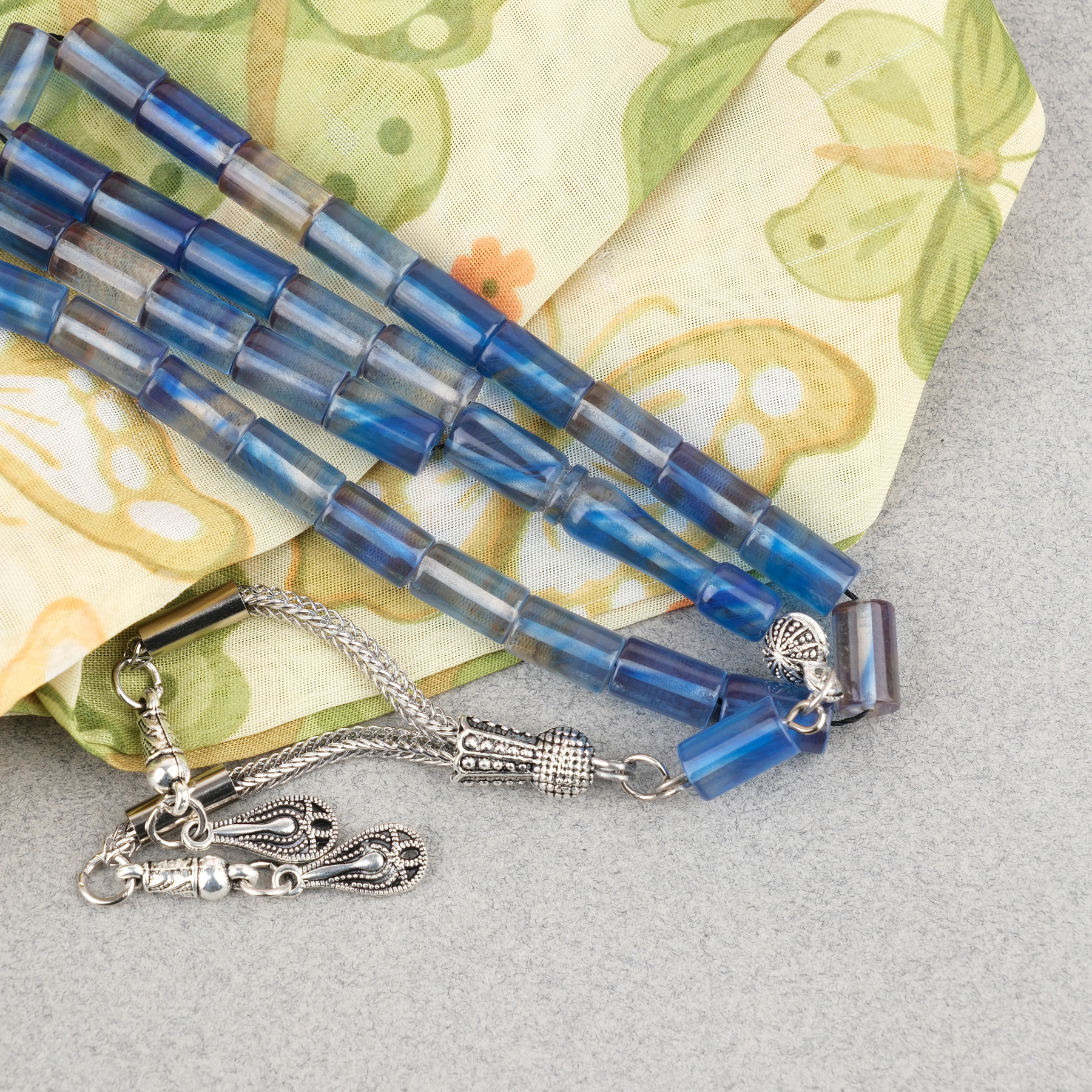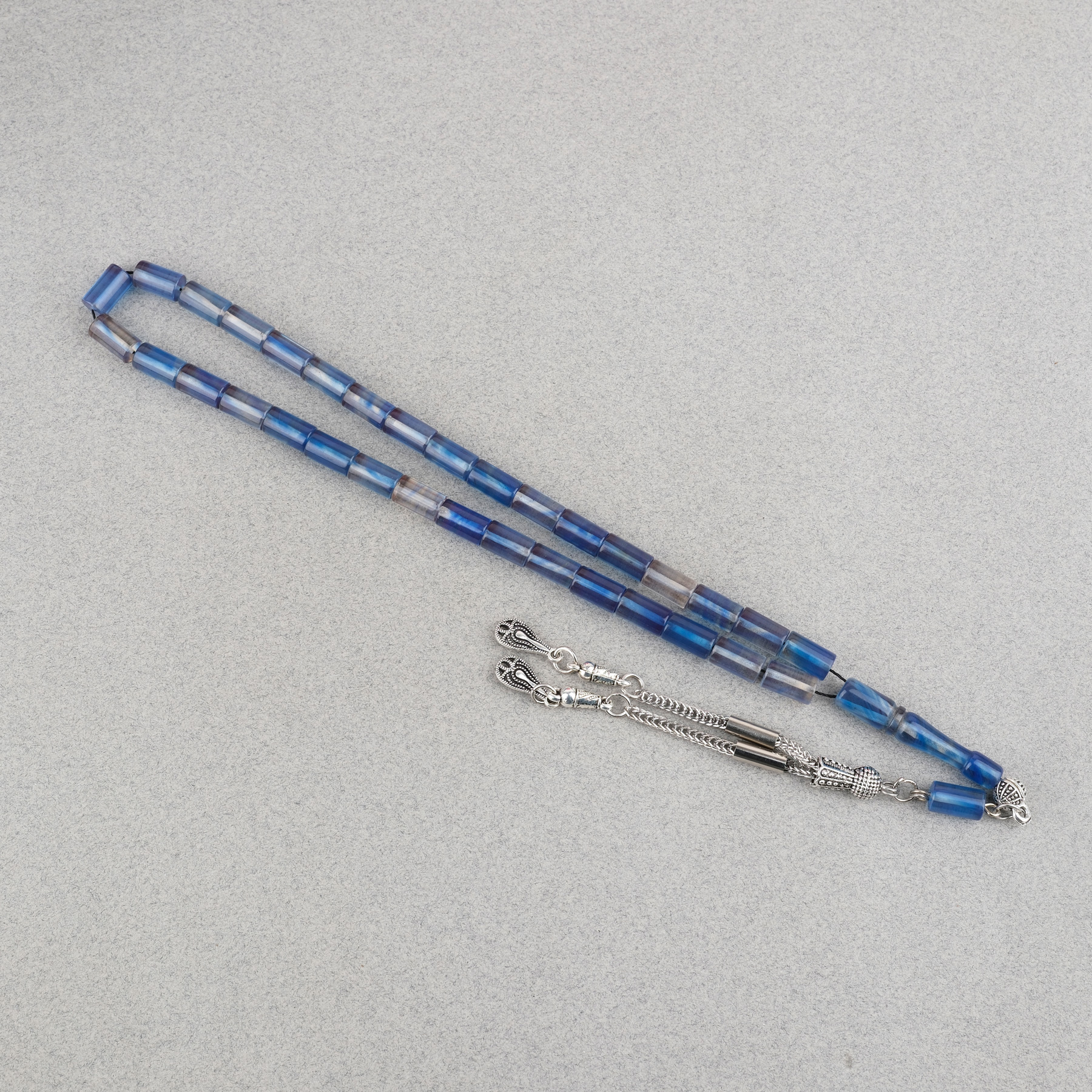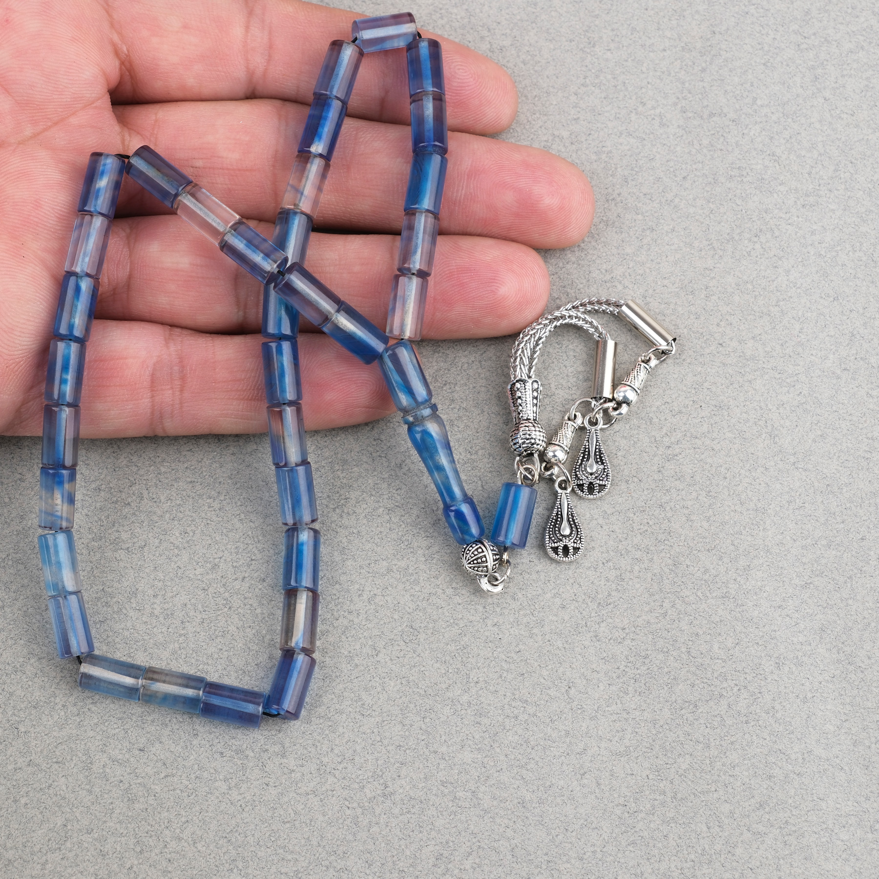 Sıkma Kehribar Kesme Kesim Alpaka Püsküllü 6x10mm Tesbih