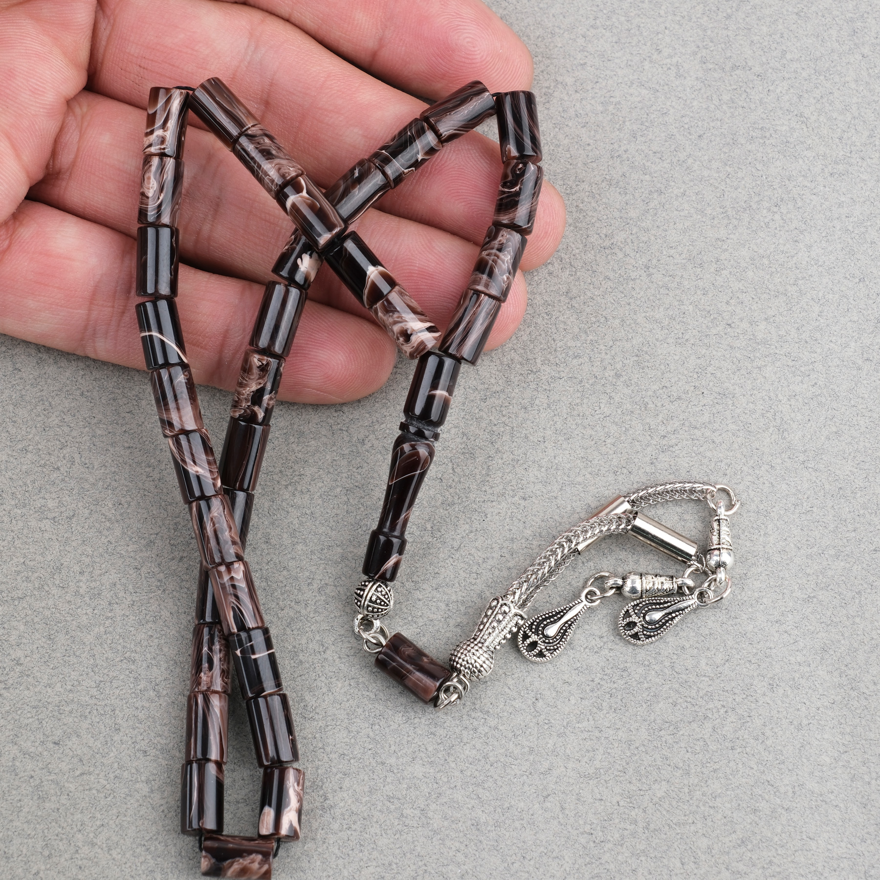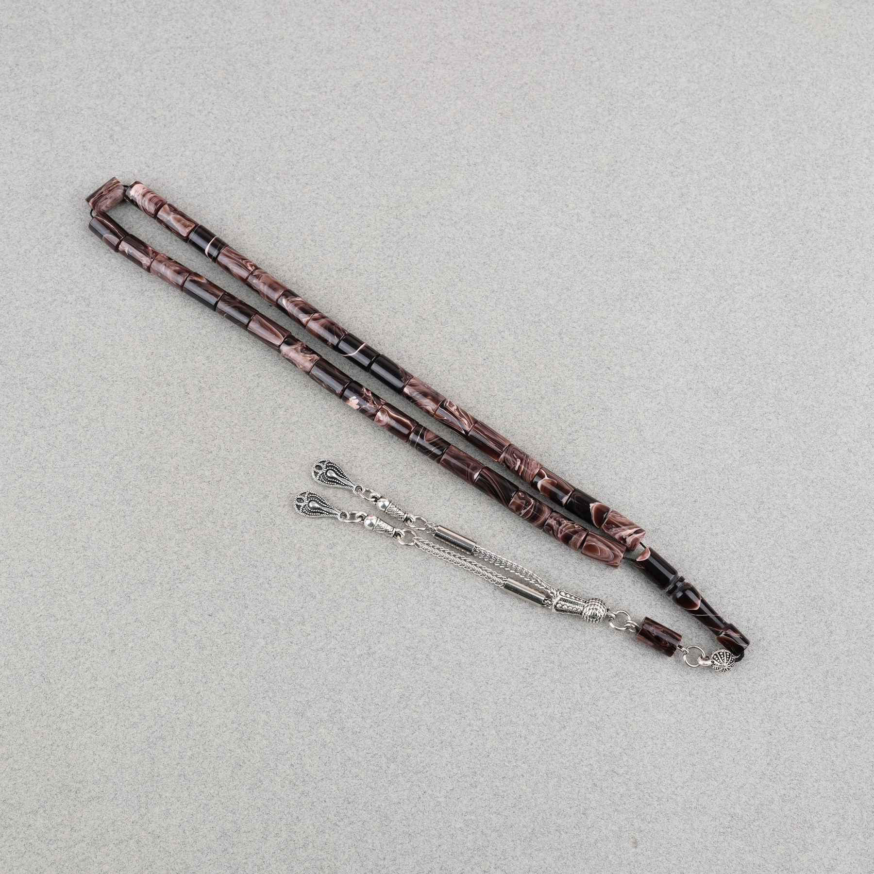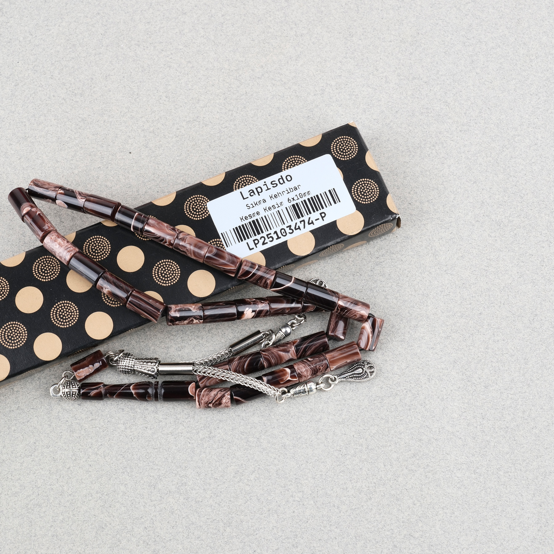 Sıkma Kehribar Kesme Kesim Alpaka Püsküllü 6x10mm Tesbih